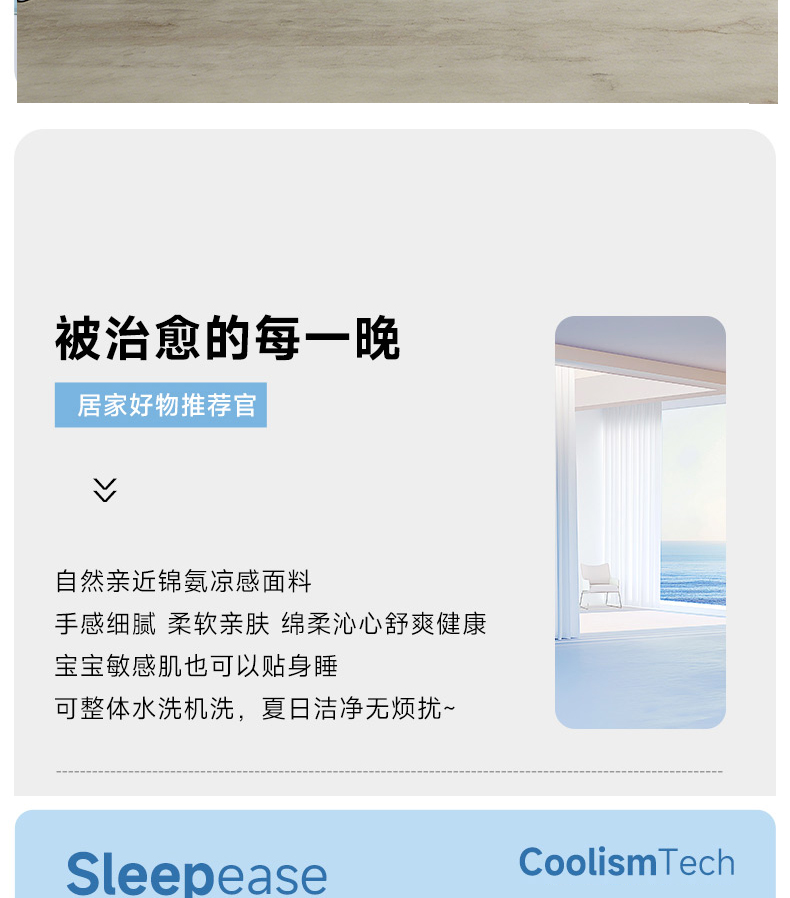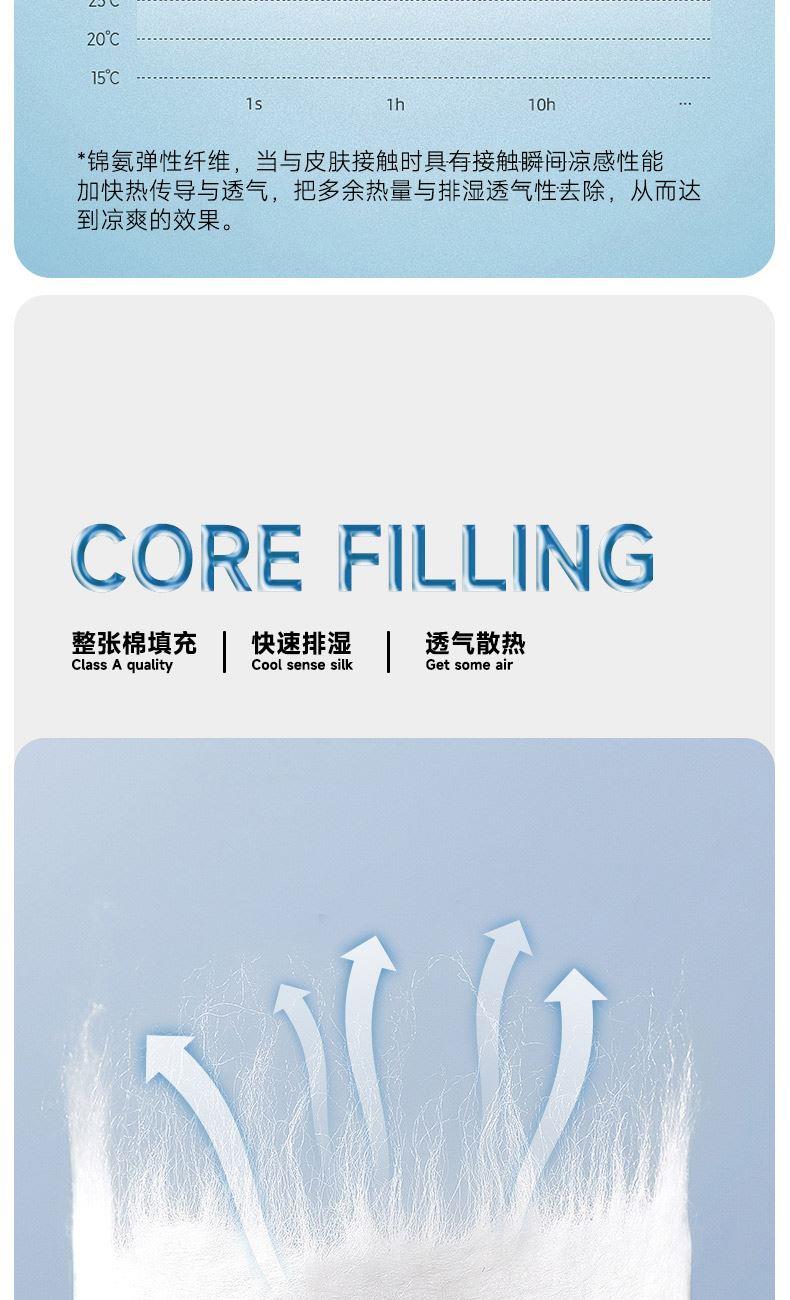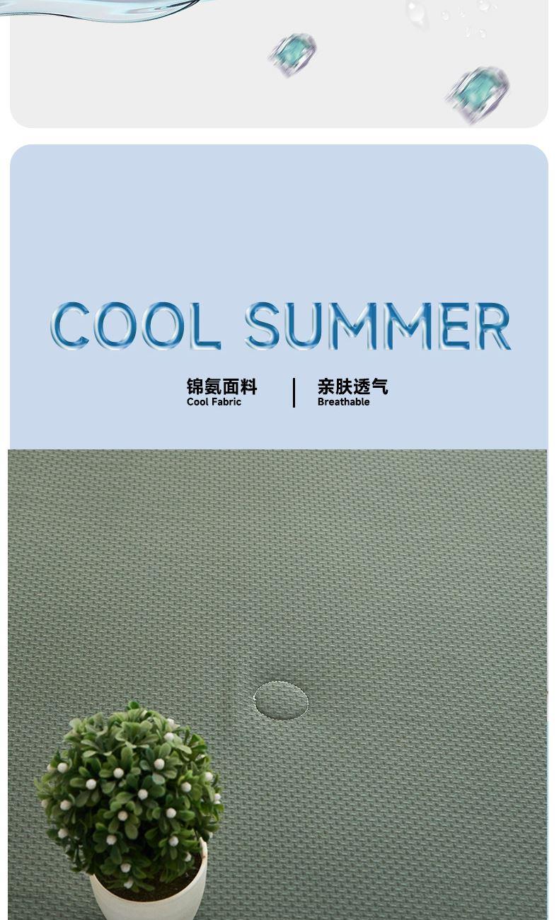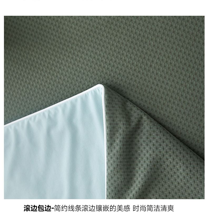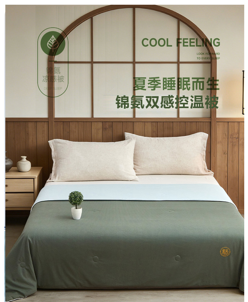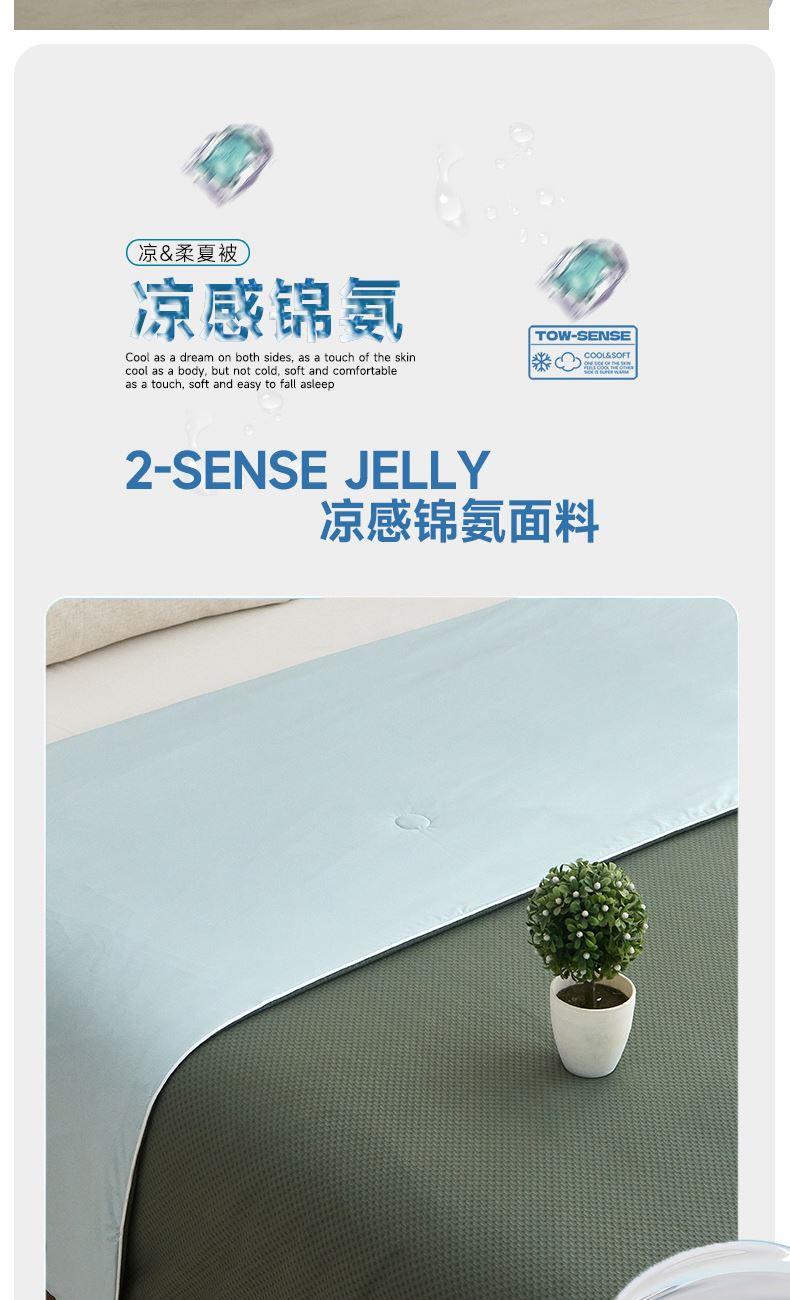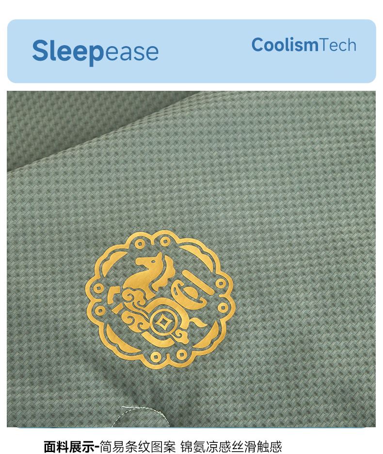 规格:200*230cm 面料:锦氨 填充:超细纤维 克重:2000g 执行标准:GB/T22796-2021 安全类别:GB18401-2010 B类 1.锦氨凉感是一种科技纤维,这种纤维的吸湿性、透气性比普通纤维要好得多,同时还具有比较好的保型性和悬垂性。 2.锦氨的含湿率符合人体皮肤的生理要求,具有光滑凉爽、透气、抗静电、防紫外线,色彩绚丽的特点。丝的品质是地道的生态纤维,源于天然而优于天然。