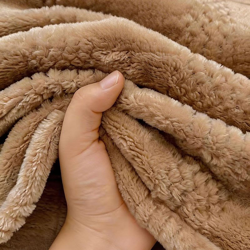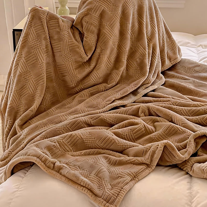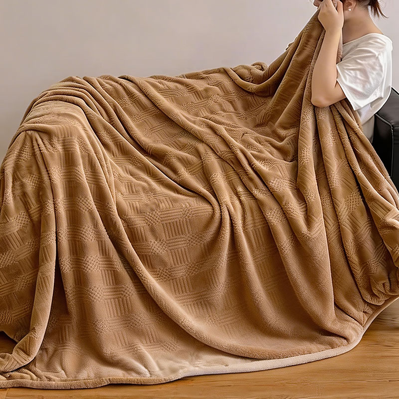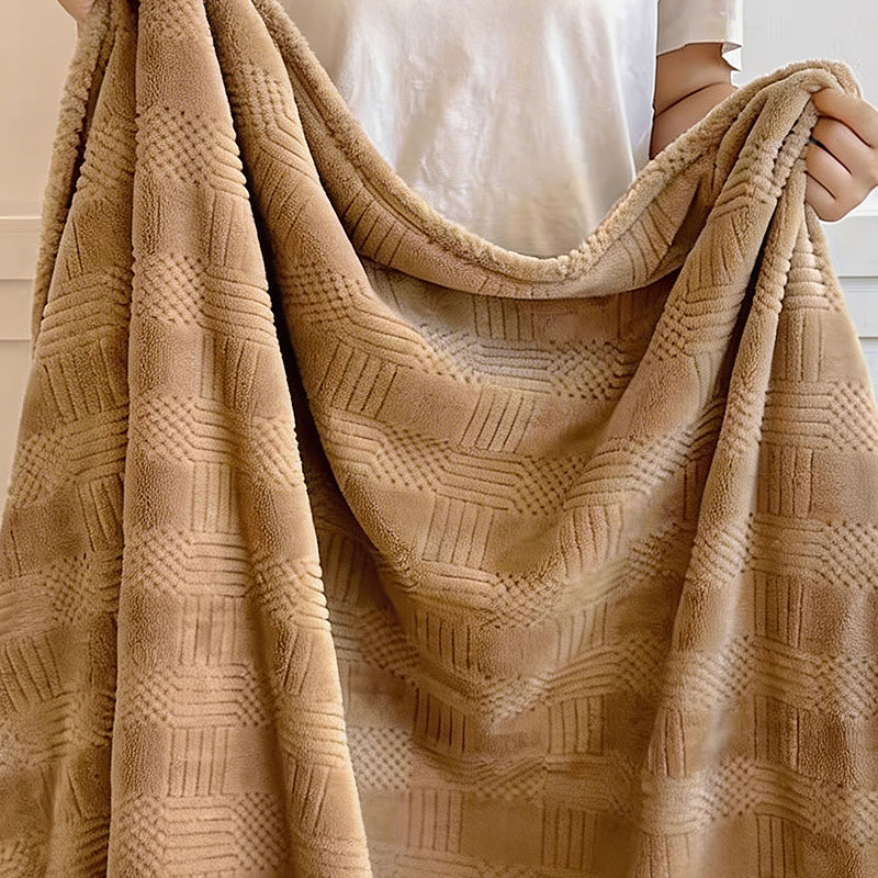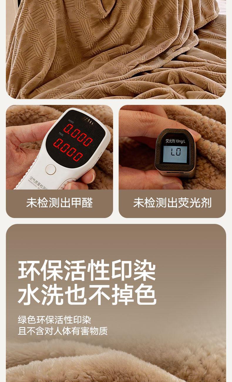 货 号 :HMT-2518 面 料 :提花法莱绒 规 格 :180*200cm 重 量 :净重约1000g 包装尺寸 :45*36*14.5cm 装 箱明细 :50条/包 1、采用提花法莱绒作为面料,触感比拟撸猫感。 2、加厚工艺,保暖性更强。 3、精致卷边,仪式感强。 4、搭配精美内袋,礼盒,彰显品 牌质感,高 端大气