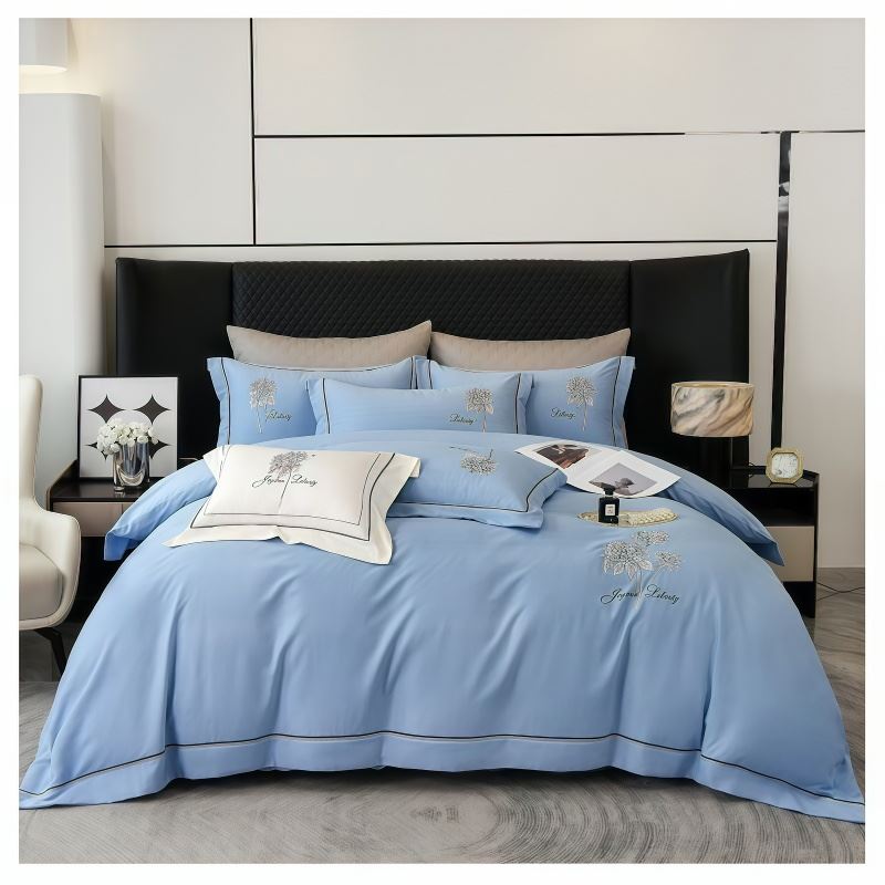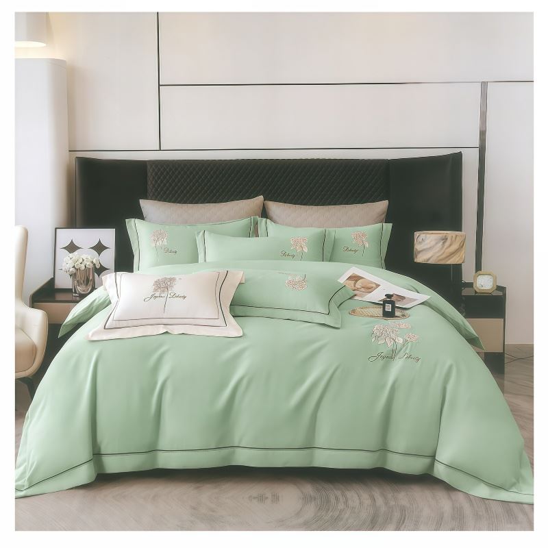 1:高支长绒棉面料,手感细腻柔滑,贴肤舒适织造紧密,久用不易起球 2:以精湛的绣花工艺将自然元素巧妙融入,每一针一线都凝聚着匠心为床品增添了一份灵动与雅致 3:绿色活性印染 健康舒适亲肤 色织靓丽 耐水洗不易褪色手感更柔软舒适 面料:新疆长绒棉 尺寸:标准:被套200*230cm*1 床单250*250cm *1 枕套48*74cm*2 包装:彩盒