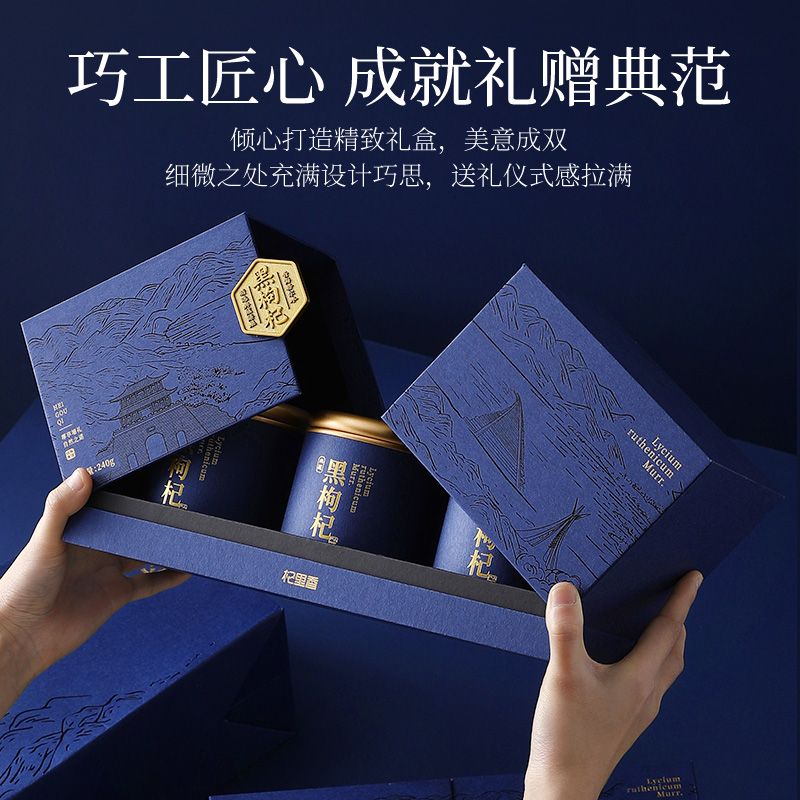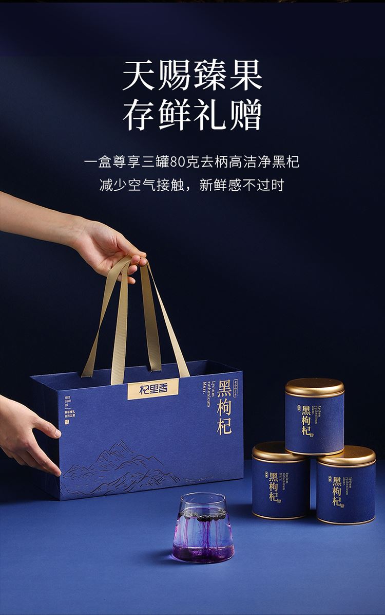 杞里香240g(3罐)礼盒装去柄黑枸杞青海格尔木黑枸杞,礼盒