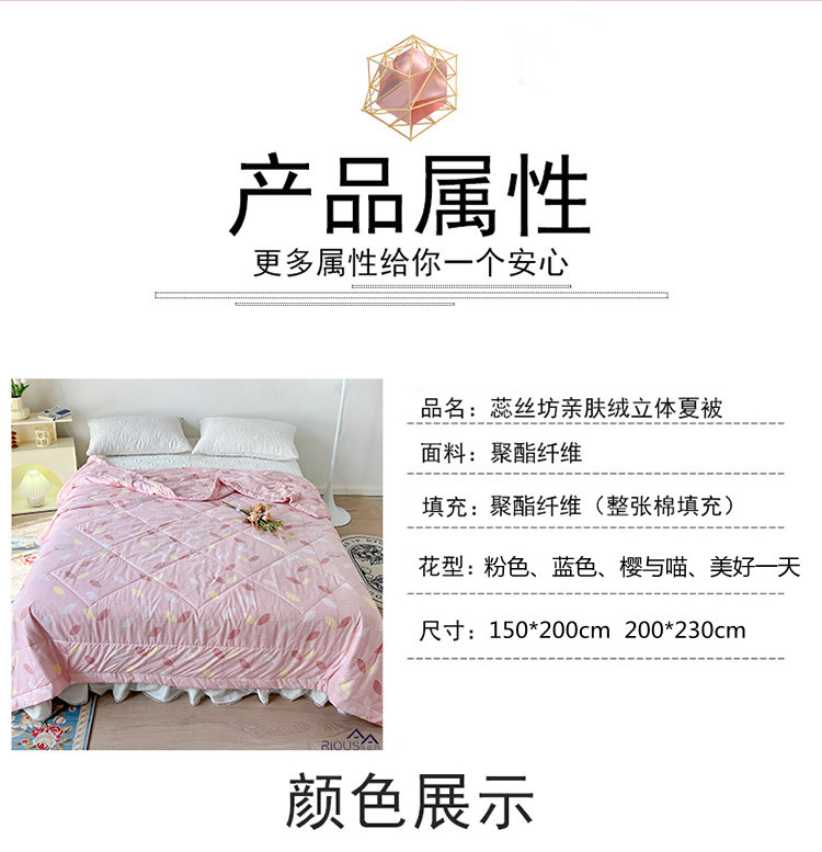 蕊丝坊家纺亲肤绒立体夏被150*200cm