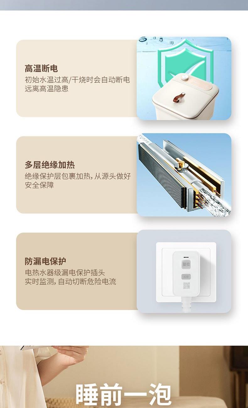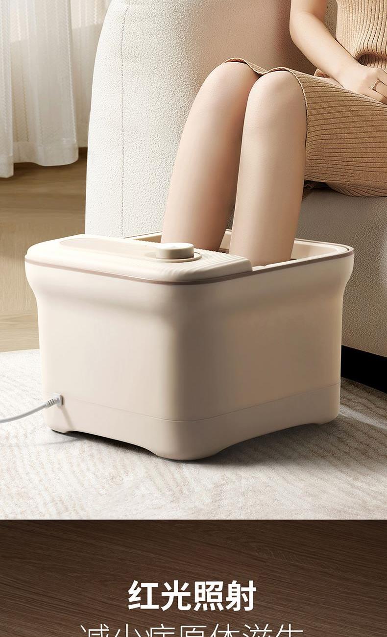 产品规格: 额定电压:220V~50Hz 额定功率:500W 额定容量:7L 产品特点: 内置足浴药盒,安置药包,健康足浴; 6组脚动滚轮,配合仿真鹅卵石造型的立体按摩颗粒,打造丰富按感; 足浴时红光照射,可减少病原体滋生; PTC加热技术,水电分离,均匀加热,足浴更安心; 初始水温过高、干烧时会自动断电,远离高温隐患; 隐藏提手,结实稳固,美观又实用。