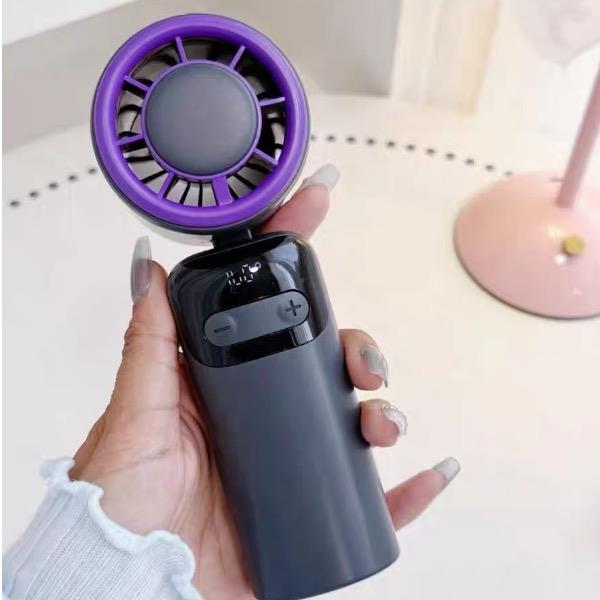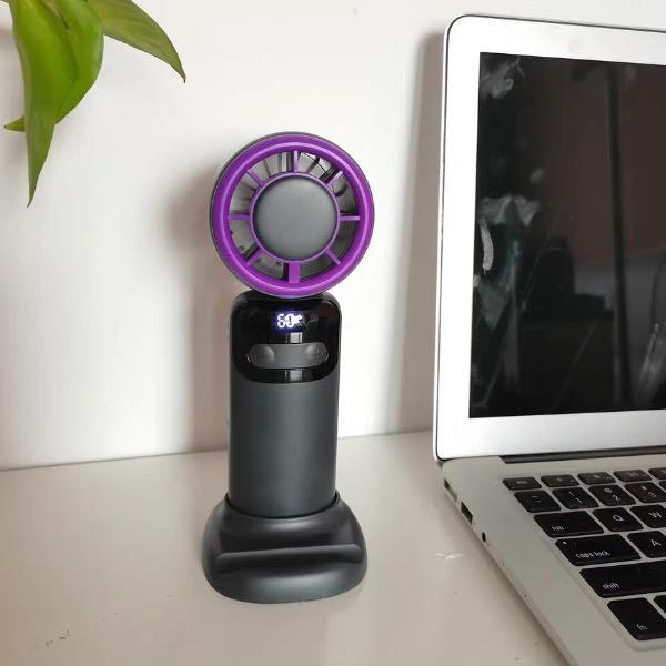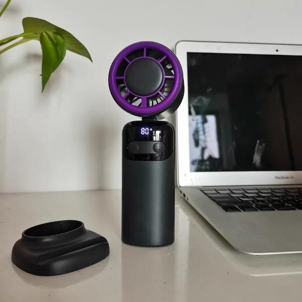 产品材质:ABS 产品功能:100档风力调节 产品容量:3000mAh 产品尺寸:68*75*168mm 产品颜色:灰色 ,米色 100档调节,风力随心选;智能数显外屏,档位清晰可见;可折叠,可挂脖;手持桌面一体化。小巧设计,方便携带。