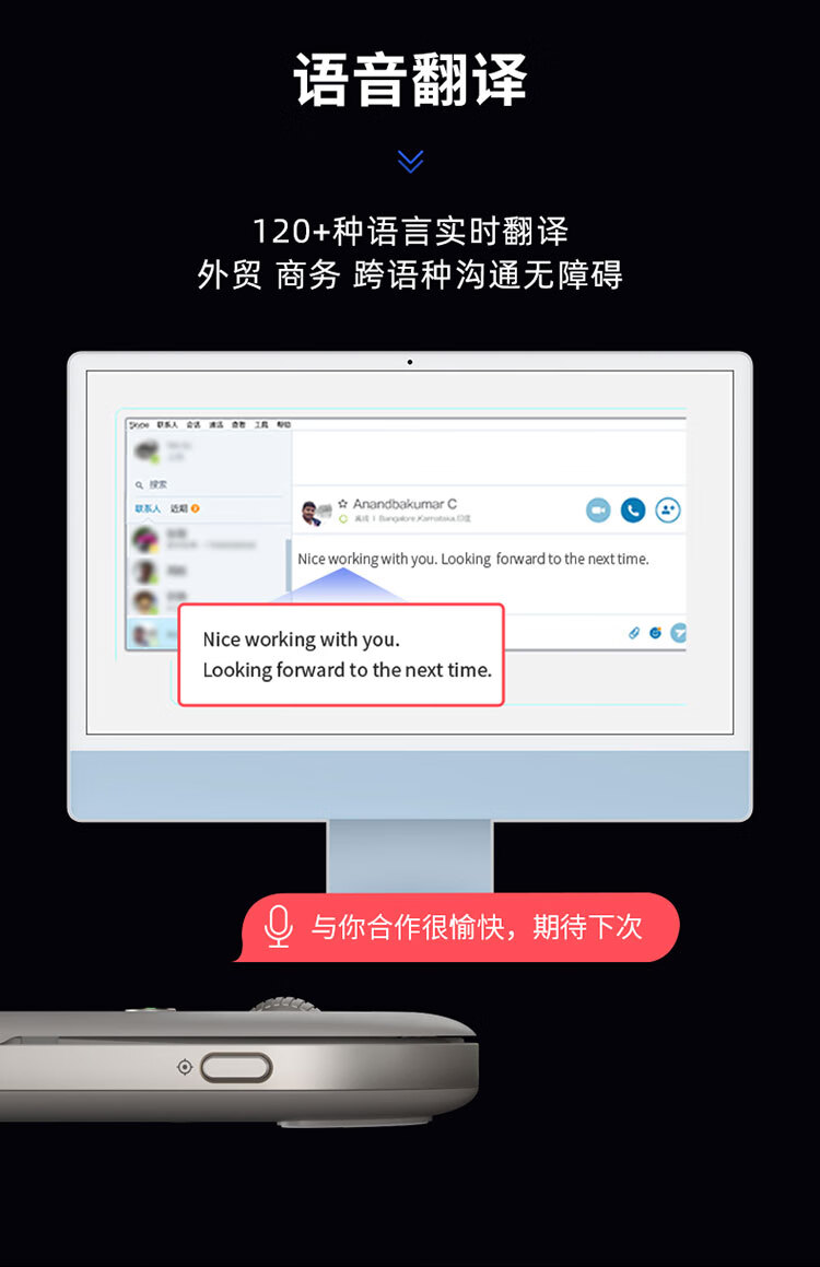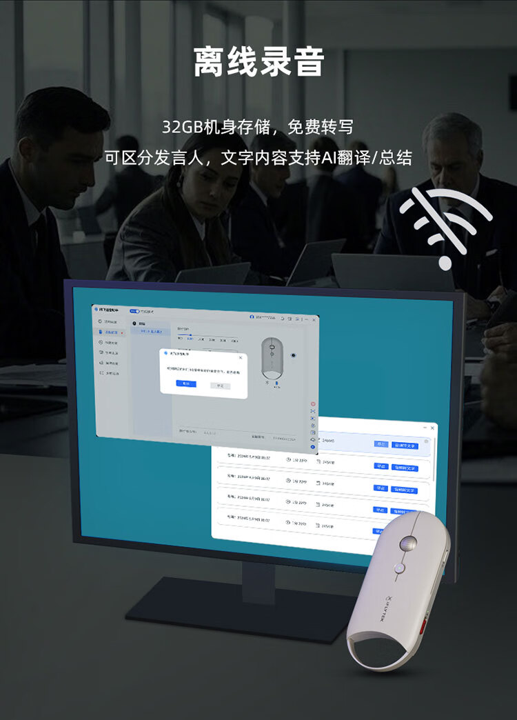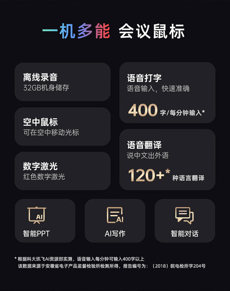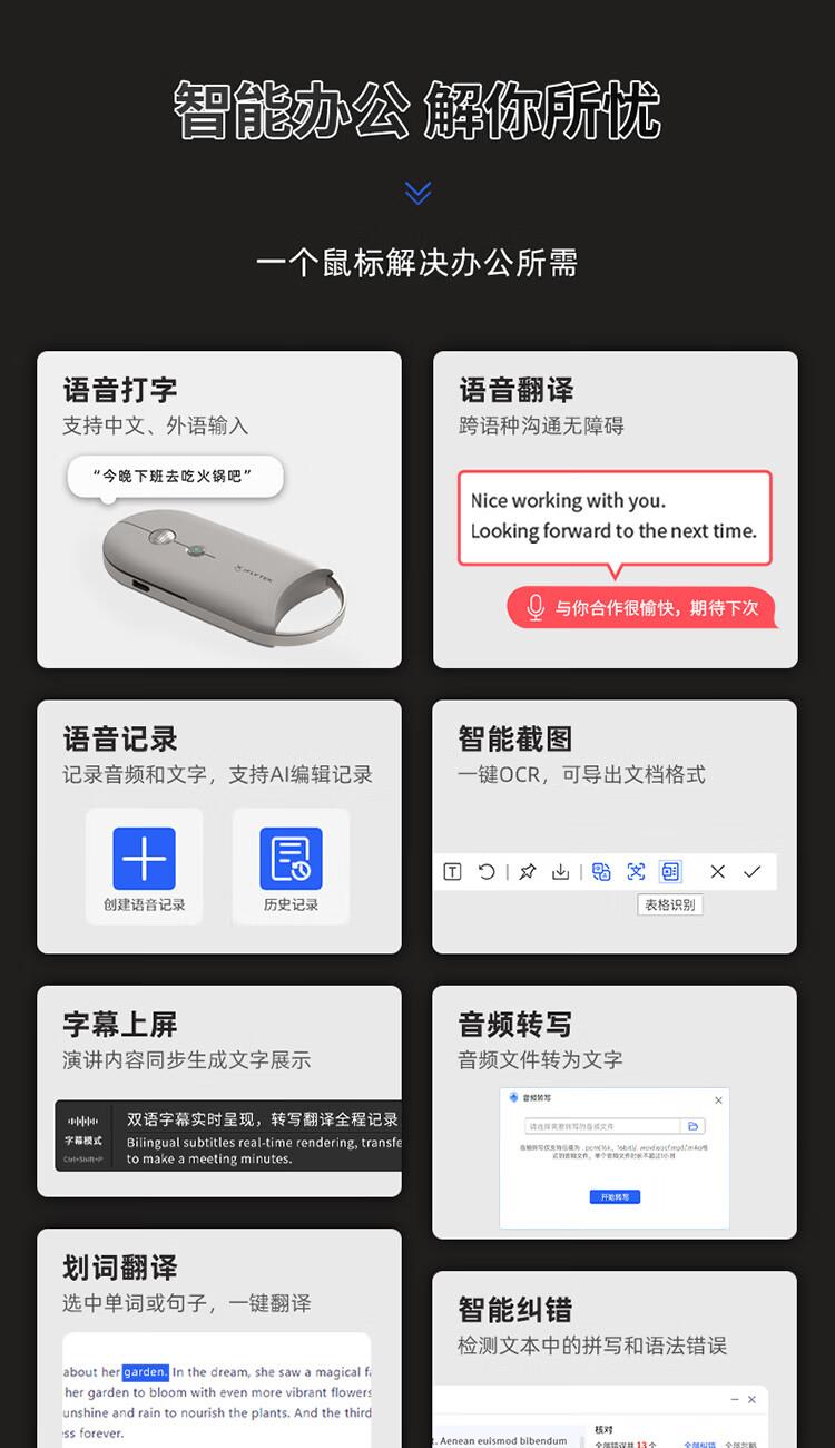 办公人士、文字编辑、翻译工作 一机多用、会议鼠标,智能生成PPT, 演示器、字幕上屏器、语音鼠标三合一, 强悍光学传感器,无线连接,三台设备无缝切换