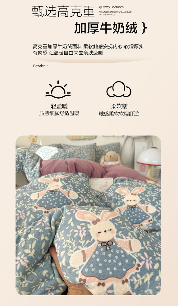 花花公子-家纺-新款高克重牛奶绒四件套冬季绒三件套
