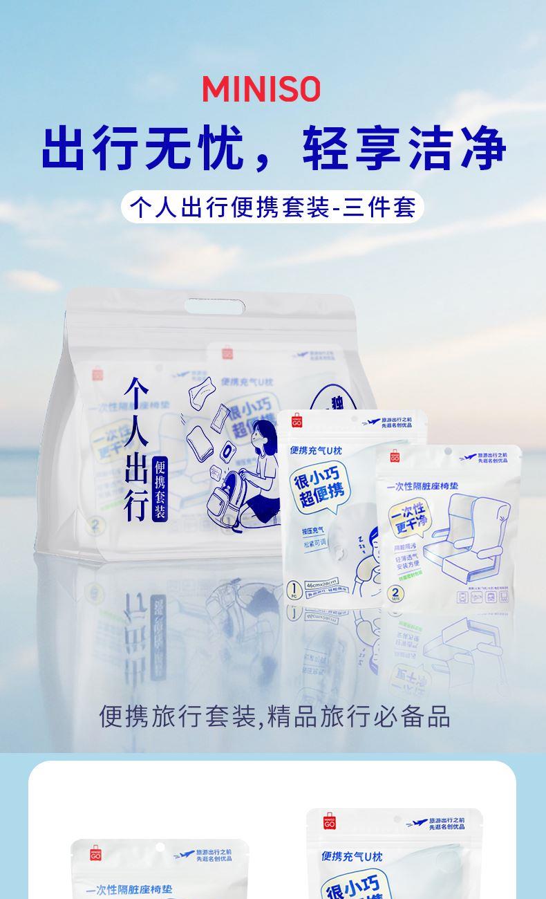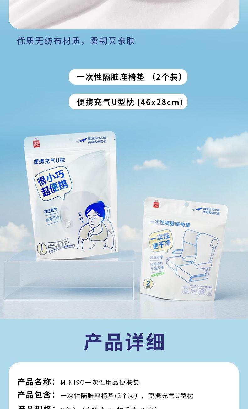 名创优品个人出行便携充气U型枕一次性隔脏座椅垫套装3件套 名创优品个人出行便携充气U型枕一次性隔脏座椅垫套装3件套