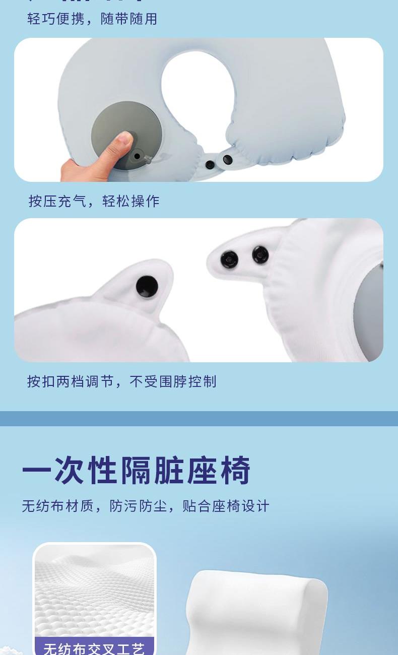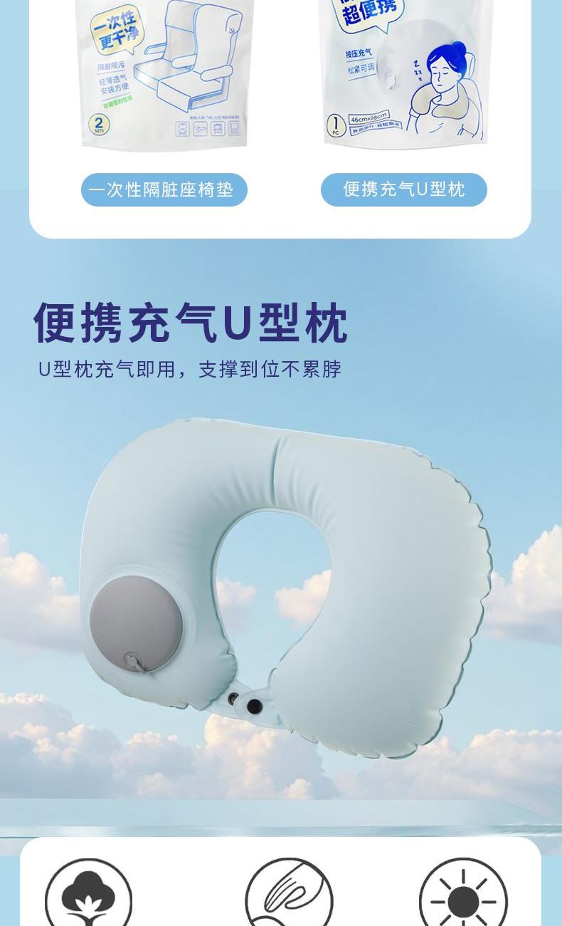 名创优品个人出行便携充气U型枕一次性隔脏座椅垫套装3件套