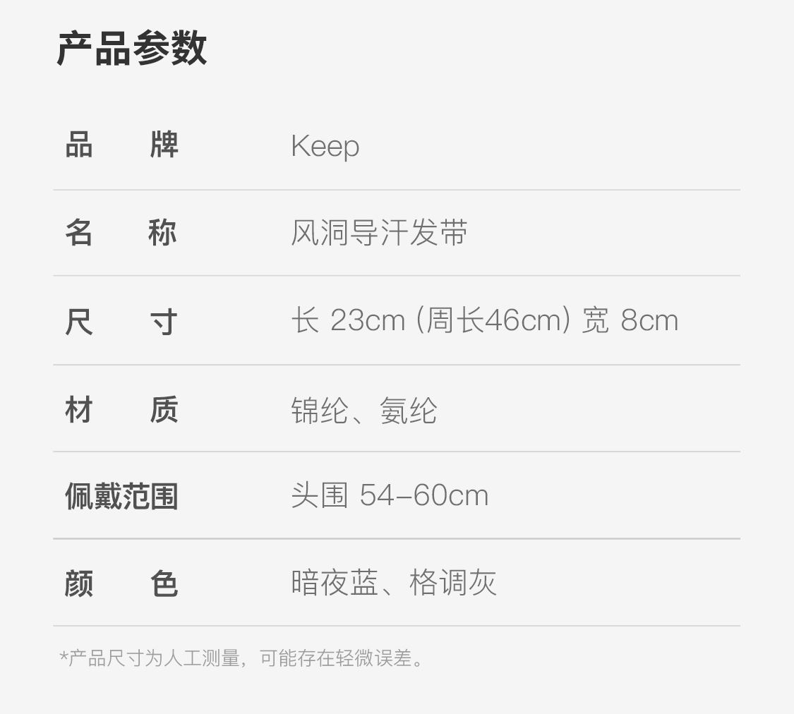 快速散热 轻盈舒爽 高效导汗 3A级kang菌 尺寸:长23cm(周长46cm)宽8cm 材质:锦纶、氨纶 佩戴范围:头围54-60cm