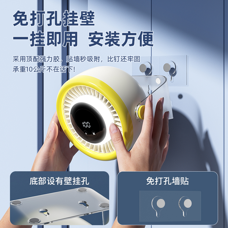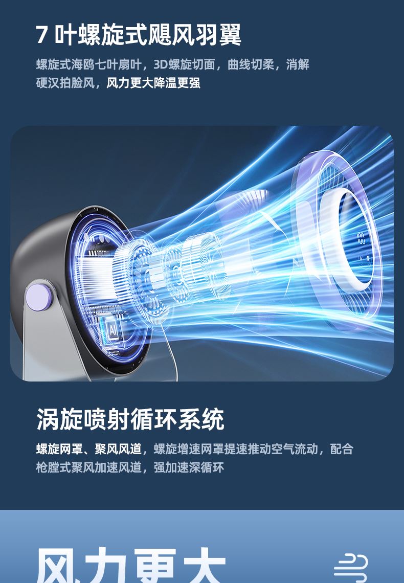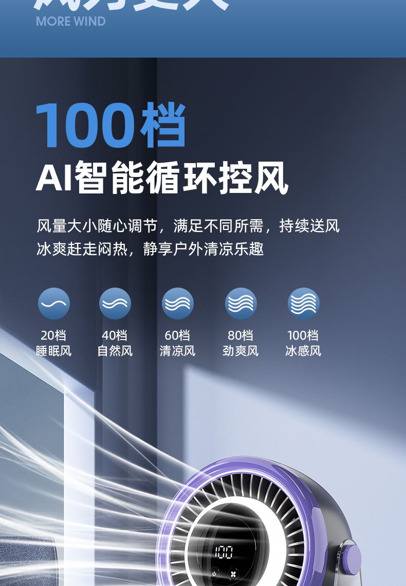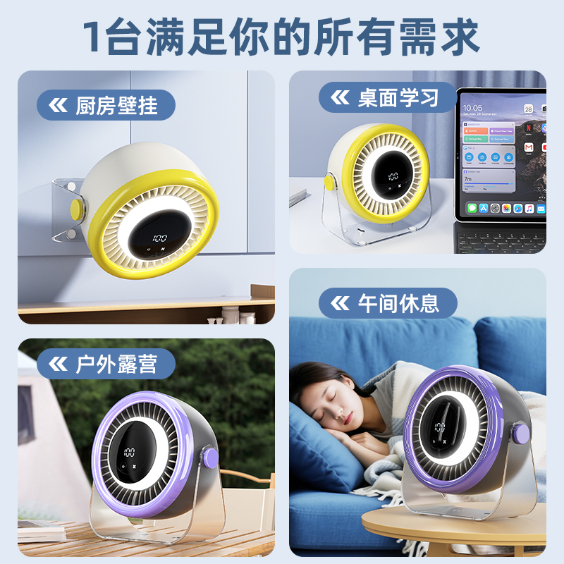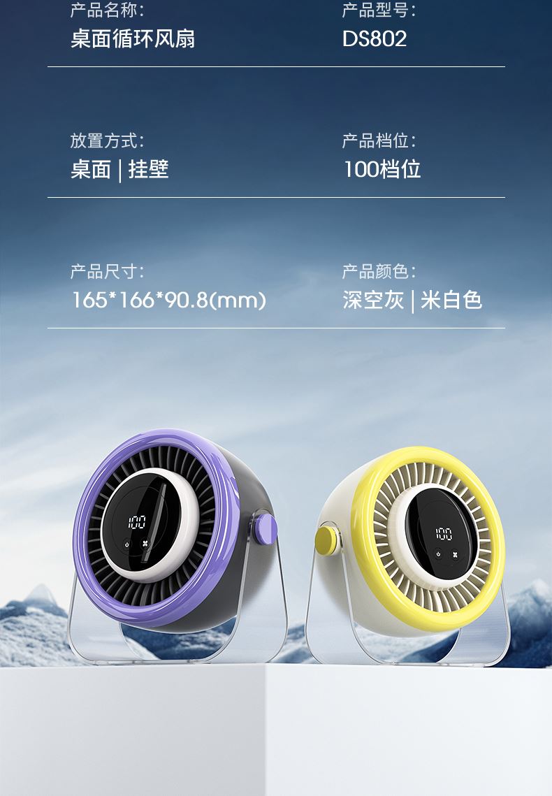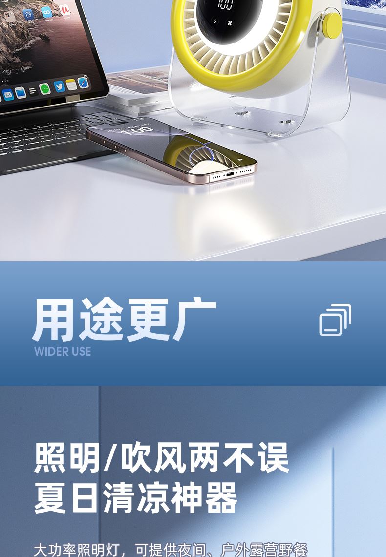 产品材质:ABS 产品功能:100档风力调节 产品容量:3000mAh 产品尺寸:165*166*90.8mm 产品颜色:戴森灰,柠檬色 100档调节,风力随心选;智能数显外屏,档位清晰可见;搭配空调使用,能够加快制冷;可挂壁两用,使用更方便,使用场景更多;小夜灯功能,伴我们安心入眠。