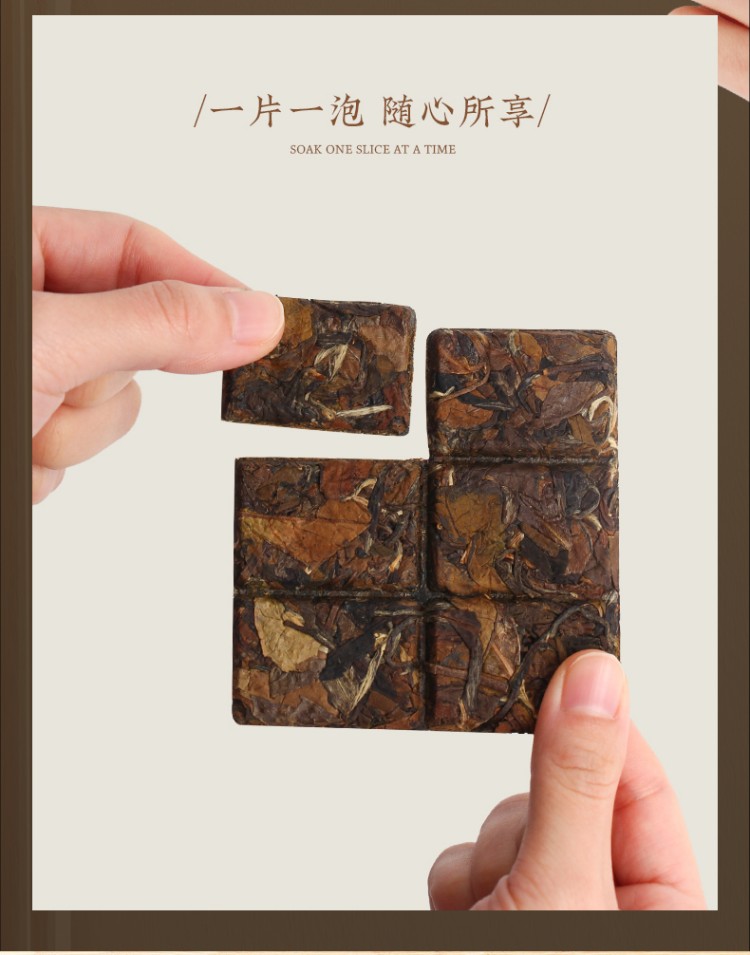 2.不做旧,香醇自然甜,有枣香、药香,干茶色泽黄褐,呈巧克力状,端正匀称,松紧适度,表面平整,香气纯正。