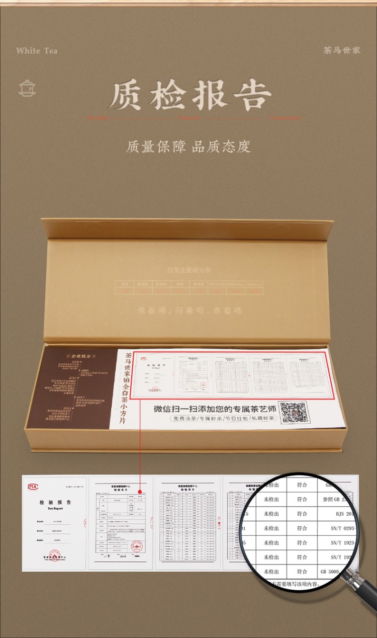 3.经历七年陈化,香甜醇滑逐渐显现,清甜甘香,茶性已经朝着温润转变。陈韵香气自然,变化层次分明。而随着时间的推移,它的汤感会越发饱满,香气也会逐年沉稳。对标市场同类白茶,性价比高,高品质原料,详细的审评报告