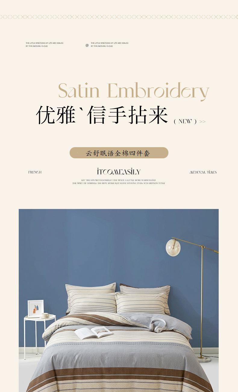 被套:200*230cm 床单:230*245cm 枕套:48*74cm*2 面料:全棉 产品包装:精美礼盒 产品特点: 全棉面料舒适、温度平衡,接受皮肤时感到柔软而不僵硬。棉纤维是天然纤维。纯棉织品与肌肤接触无任何刺激,对人体有益无害。