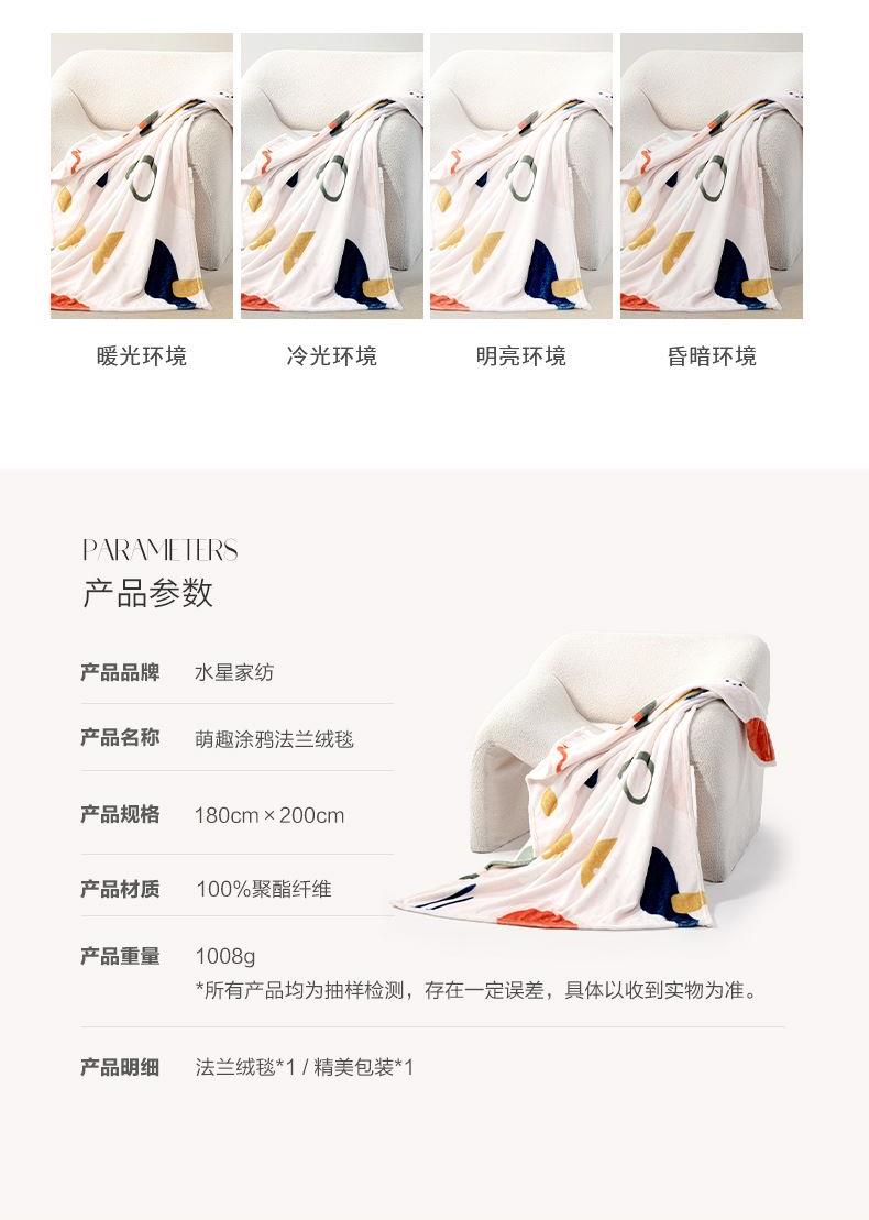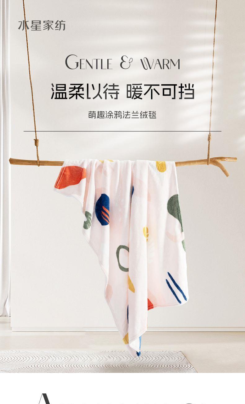 水星家纺萌趣涂鸦法兰绒毯180×200cm