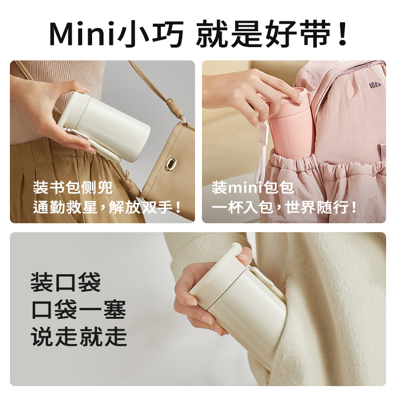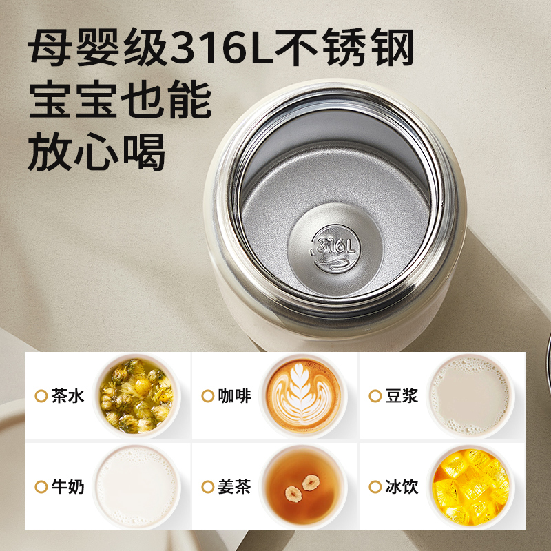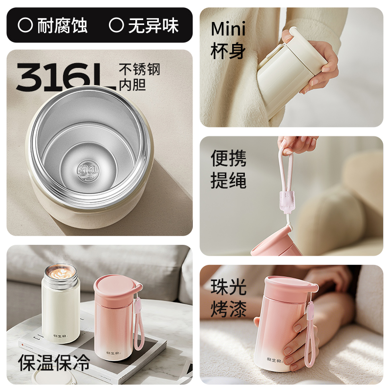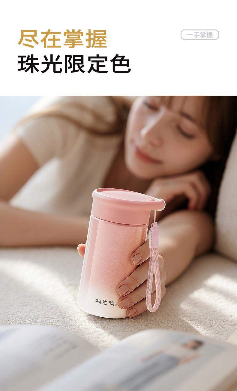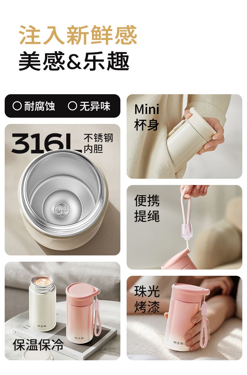 颜色:周日白 落日粉 容量:300ml/400ml 材质:杯盖/食品级pp材质 内胆,茶隔/316L不锈钢 密封胶/食品级硅胶 尺寸300ml:7.6*7.6*14.6 400ml:7.6*7.6*16.7 ①316L内胆耐腐蚀无异味 ②迷你杯身,便携提手 ③316L茶隔过滤茶渍易清洗 此报价为300ml