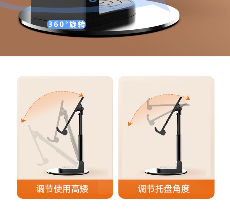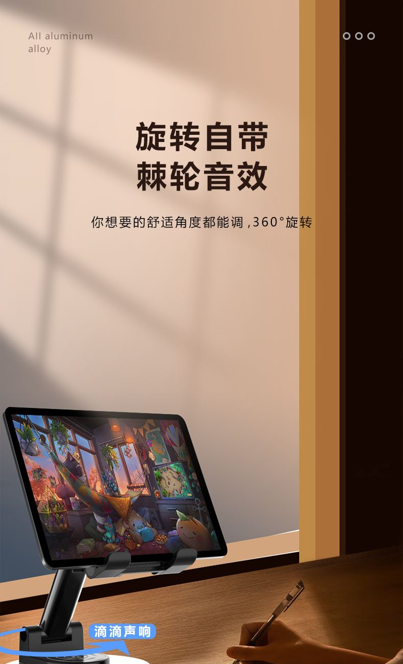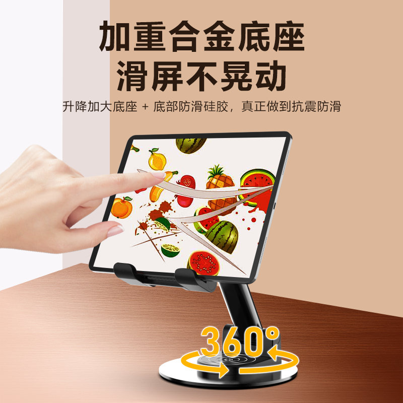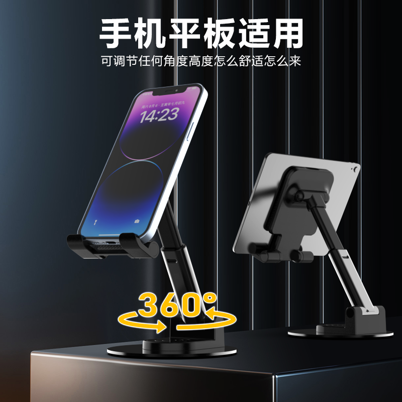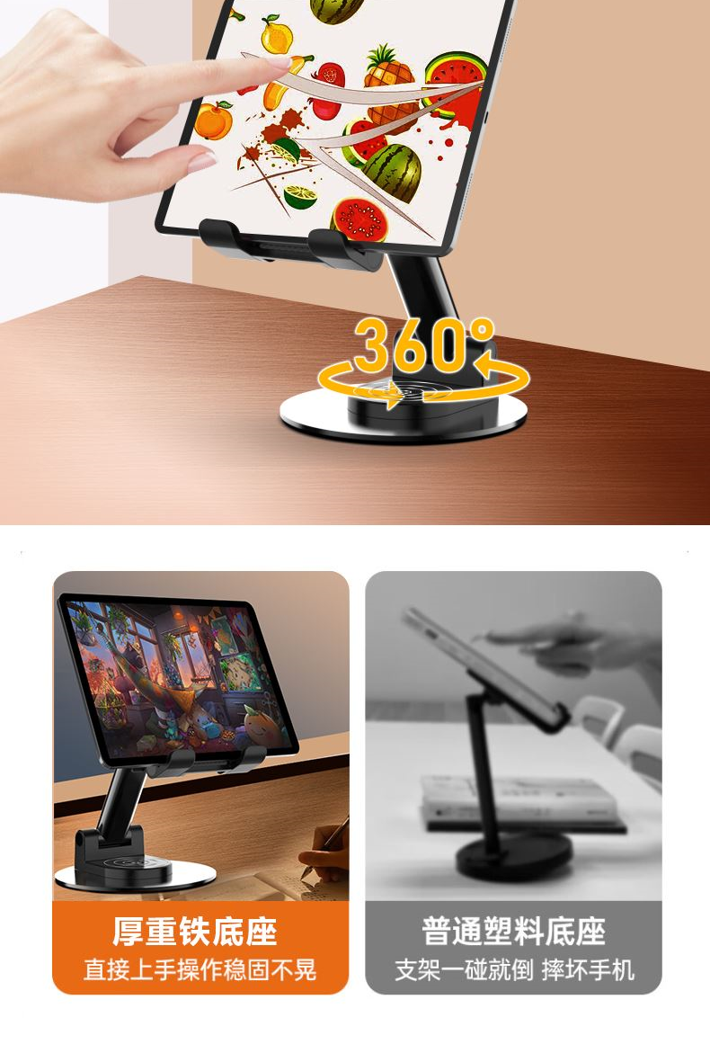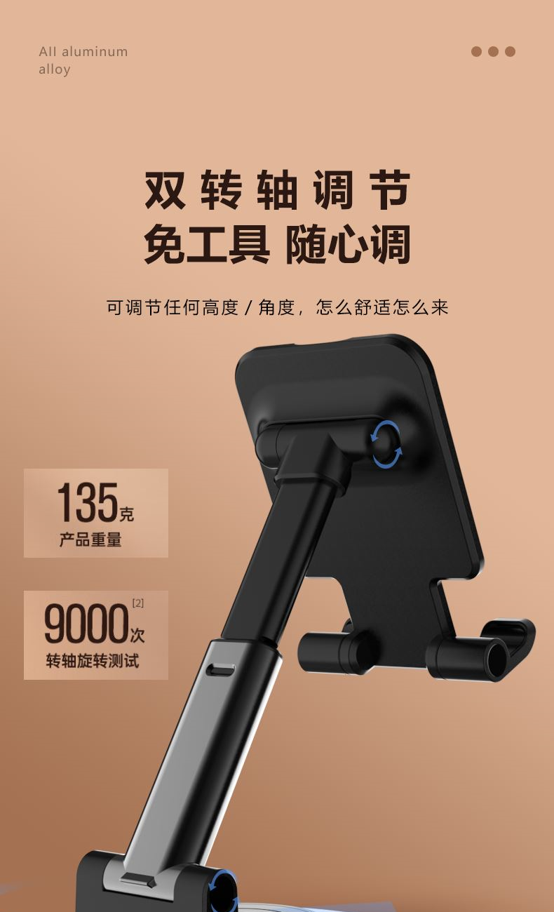 颜色:白色,黑色 材质:ABS+硅胶+金属 尺寸:122*9.8*2.9mm(折叠尺寸) 重量:约180g 适用机型:手机、平板电脑、iPad等 包装尺寸:126*100*33mm(环保牛皮纸盒) 产品卖点:360°旋转,折叠便携,高度可调,自由伸缩,加厚硅胶,加重底座,防止滑动。