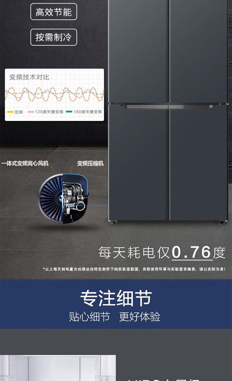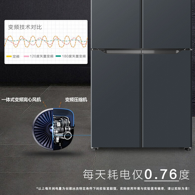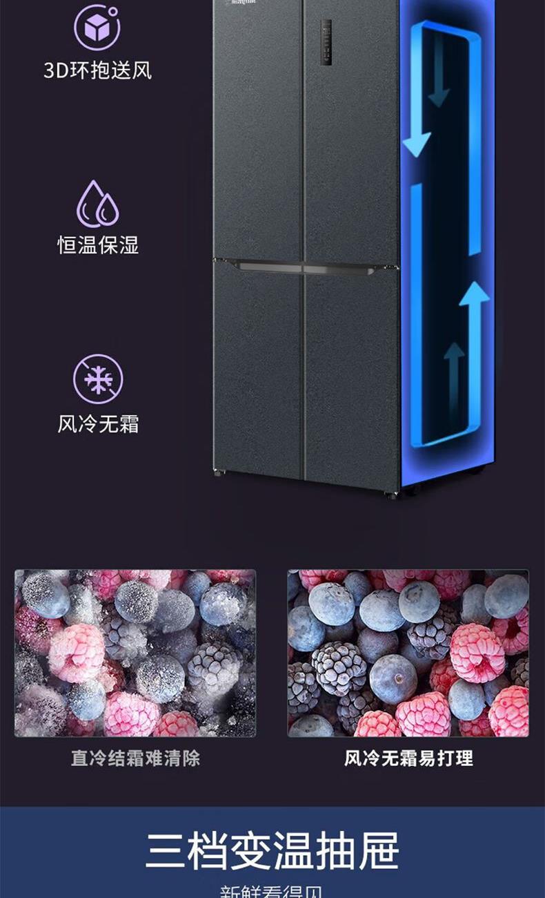 一级双变频、风冷无霜 3D环抱送风科技、恒温保湿 AG+银离子、-25°深冷速冻 三档变温抽屉、90°开门