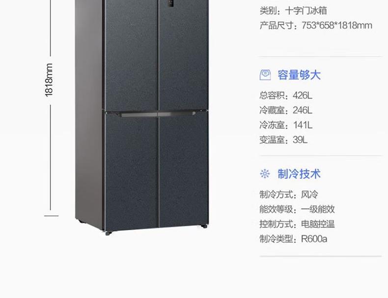 西屋冰箱BCD-WF426M500冰川灰