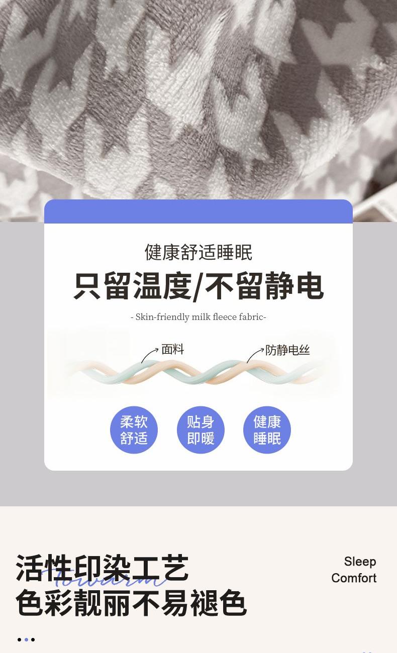 规 格:被套-200×230(±2)cm 床单-230×245(±2)cm 枕套-48×74(±1)cm×2 面 料:加密加厚贝塔绒 花 型:干鸟格灰 二代贝塔超柔保暖面料,手感细腻,双面亲肤,冬日必选品。 创新的工艺,用心的品质,认真的细节,对用户的尊重。 無印新风尚设计,创新,让生活更精彩