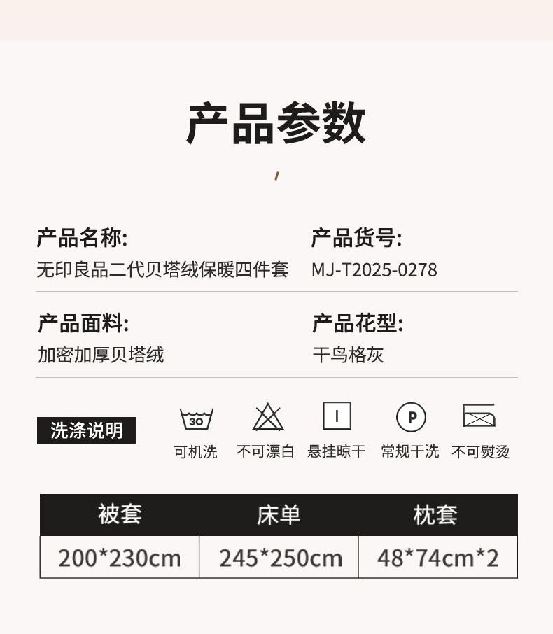 无印良品二代贝塔绒保暖四件套MJ-T2025-0278