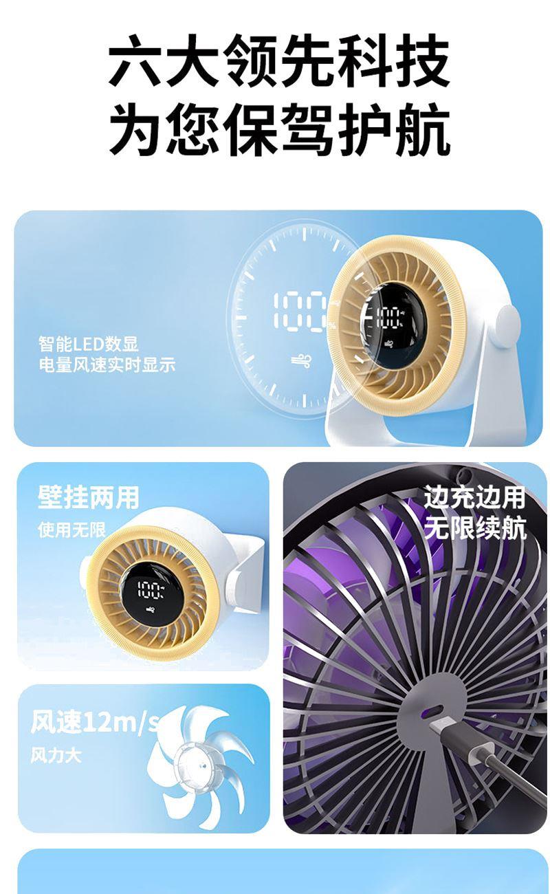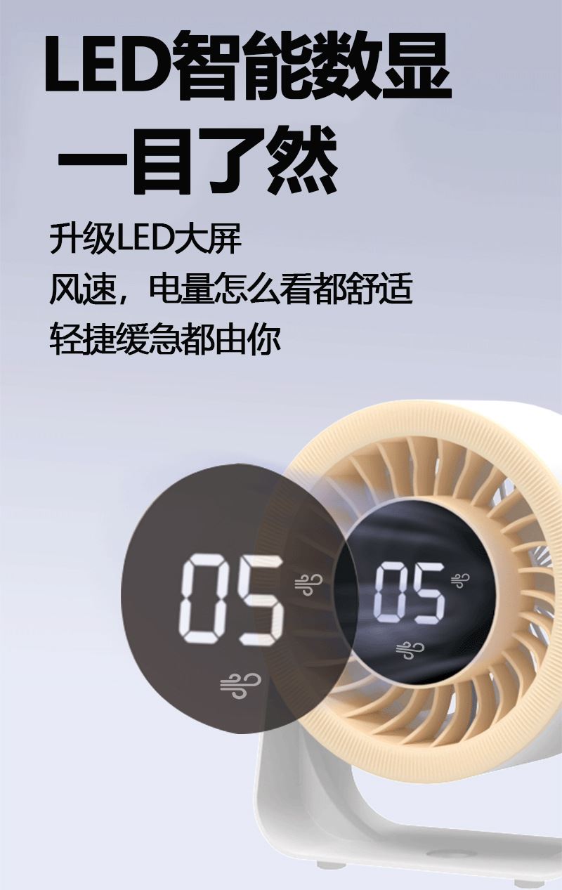 遥里逊数显涡轮挂壁小台扇桌面台式USB电风扇YLX-250