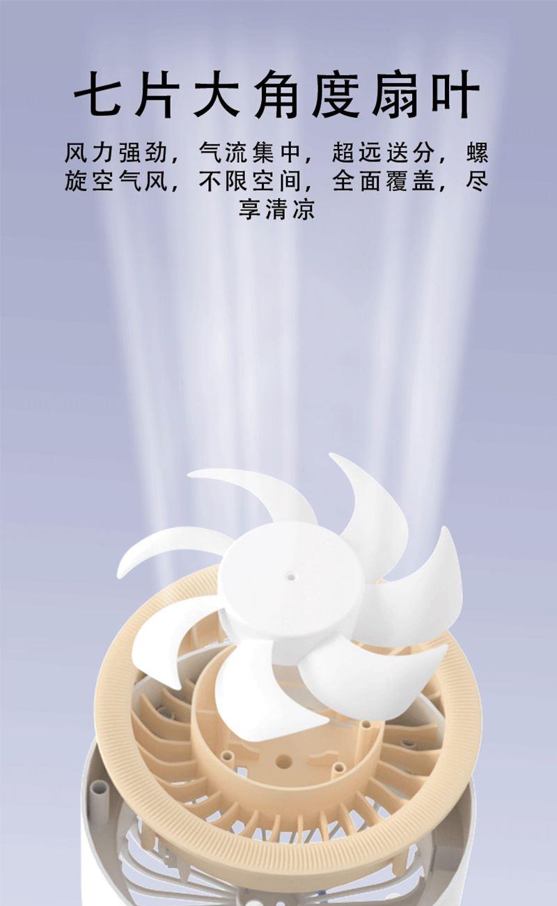 产品颜色:米黄 灰紫 产品尺寸:18.8*10.2*20.5cm 产品材质:ABS+电子元件+电池 输入电流:5V/1A 电池容量:2400mAH 功 率:5w 使用时间:1-5小时 产品重量:564g 特点: 五档运行 持久续航 挂立两用 解放双手 无刷电机 无极变速 智能数显 触摸控制