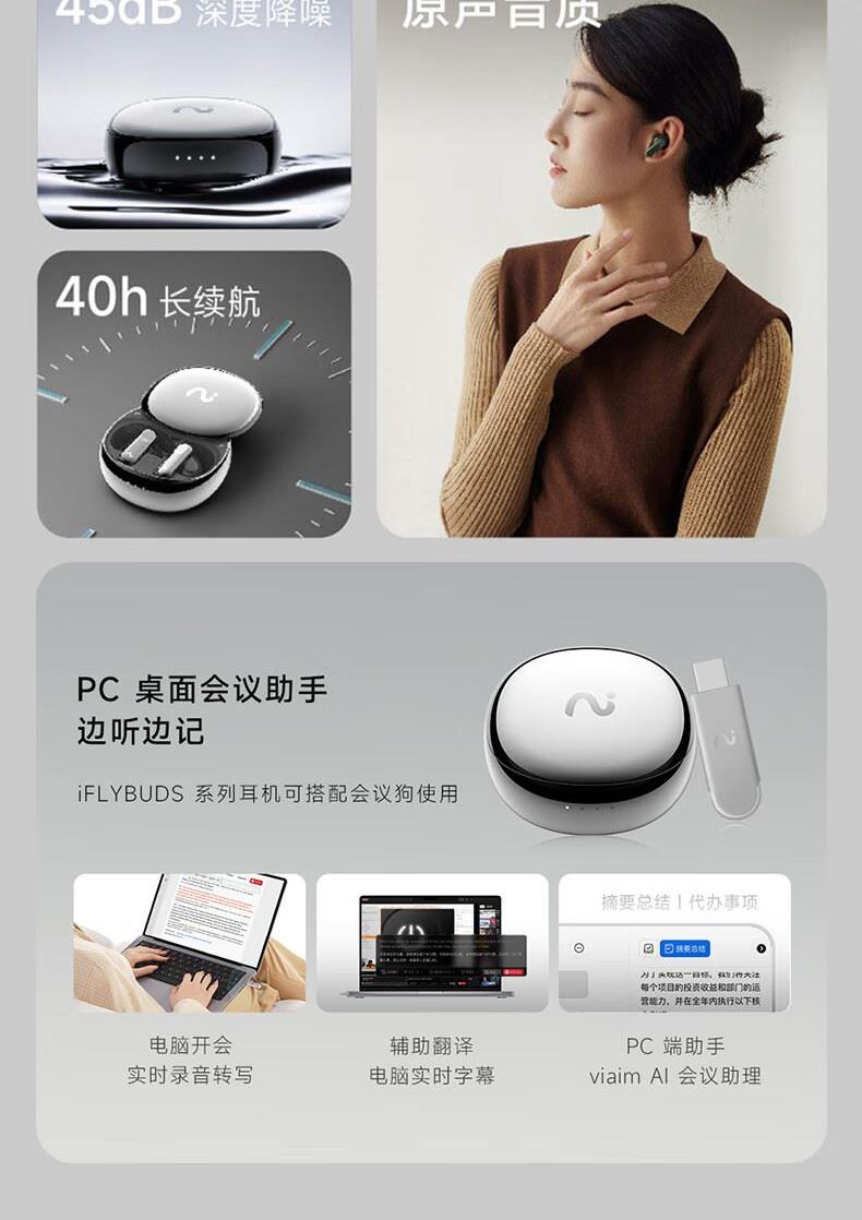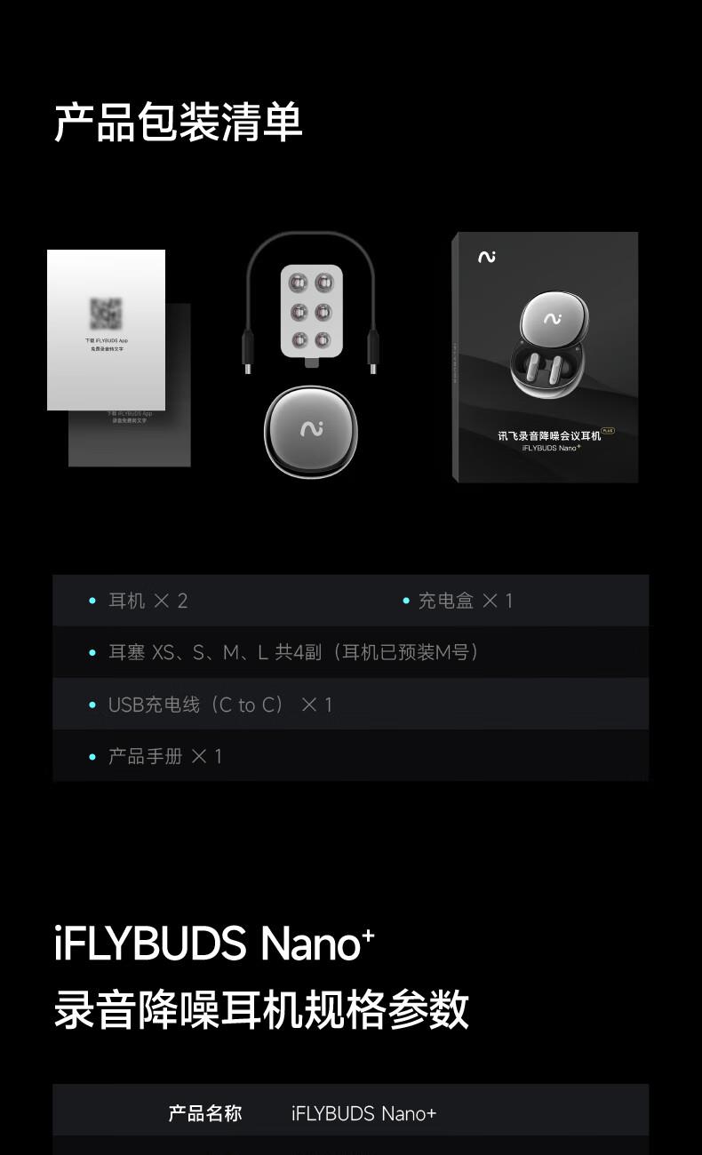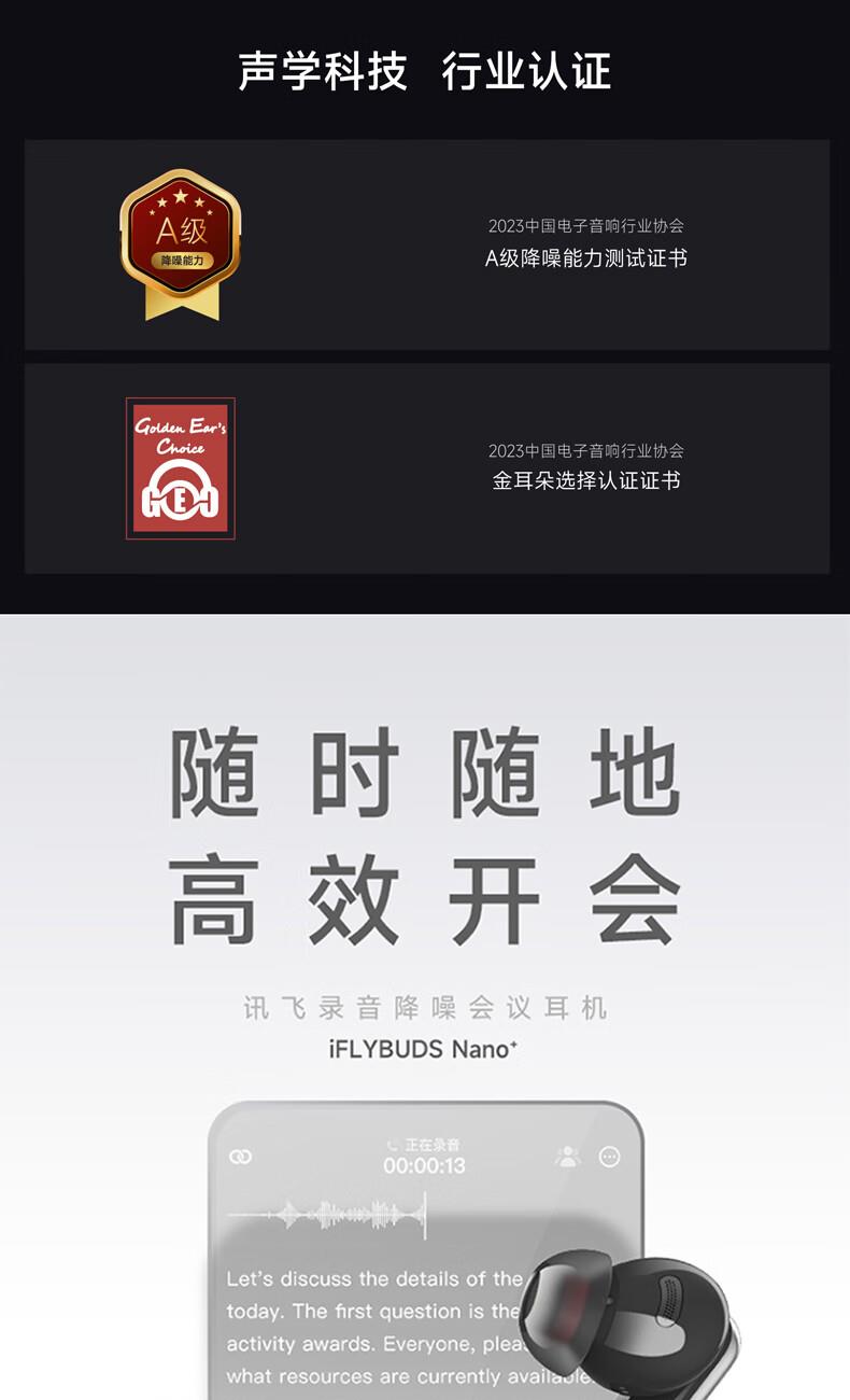 科大讯飞录音降噪会议耳机iFLYBUDSNano+