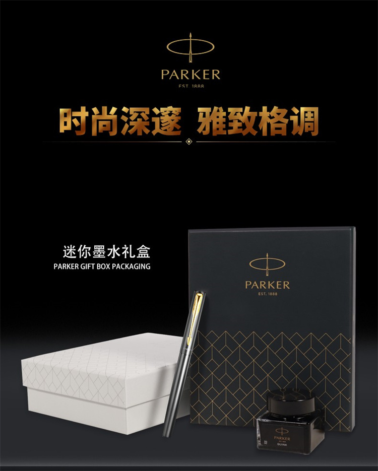 派克威雅XL经典黑金夹墨水笔+深灰迷你墨水礼盒
