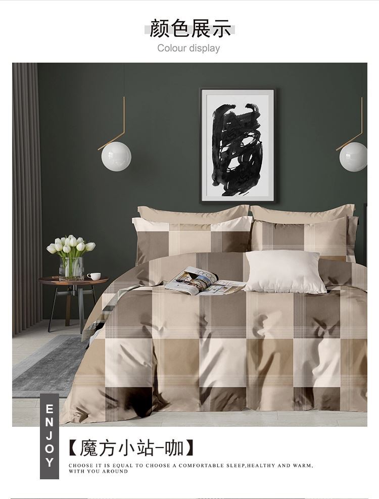 床单:230x245cm 被套:200x230cm 枕套:50x80cm 【面 料】全棉 A版 产品特点: 1.全棉织造,面料柔软细腻,透气性佳; 2.优质印染工艺,色彩丰富,层次感佳; 3.做工精良,款式简约大方。