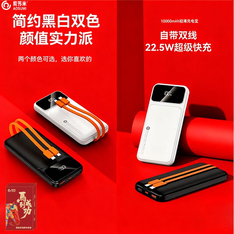 奥苏米3C认证方块超级快充内置线移动电源P15