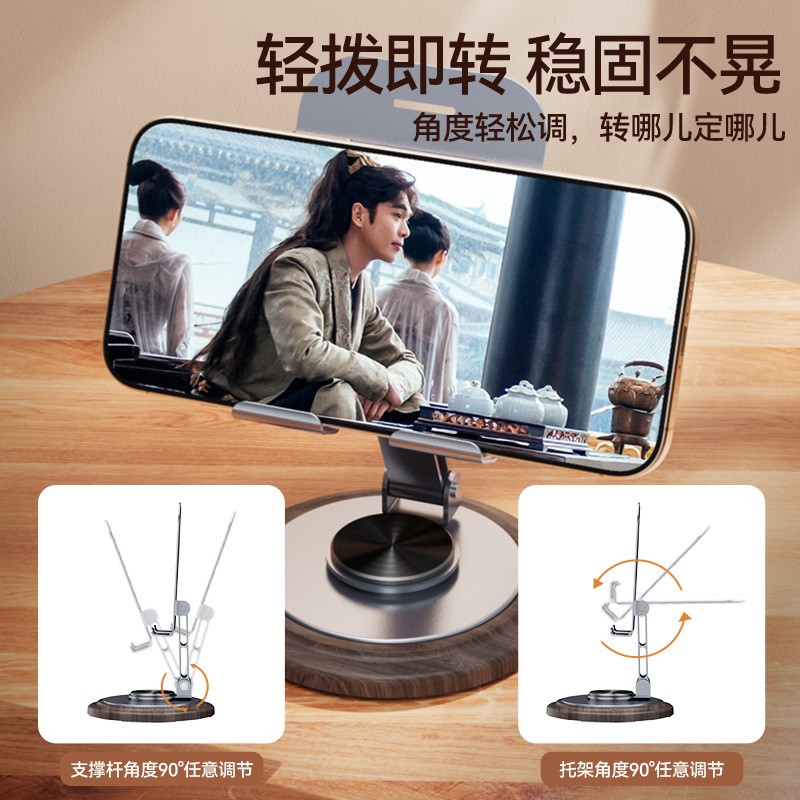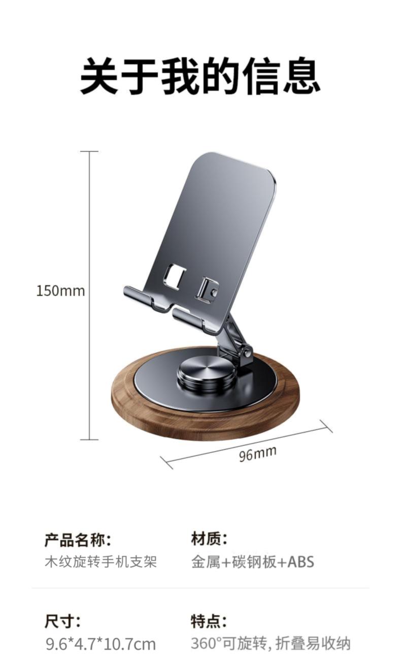 遥里逊胡桃木纹旋转桌面金属手机支架YLX-02-96