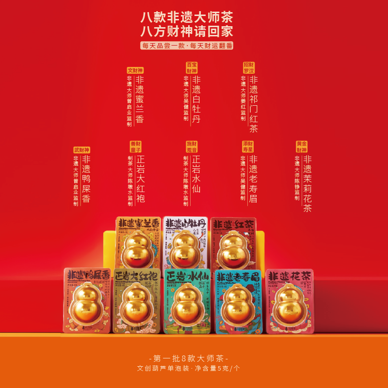 非遗祁门红茶*1 非遗蜜兰香*1 非遗鸭屎香*1 正岩大红袍*1 正岩水仙*1 非遗茉莉花茶*1 非遗老寿眉*1 非遗白牡丹*1