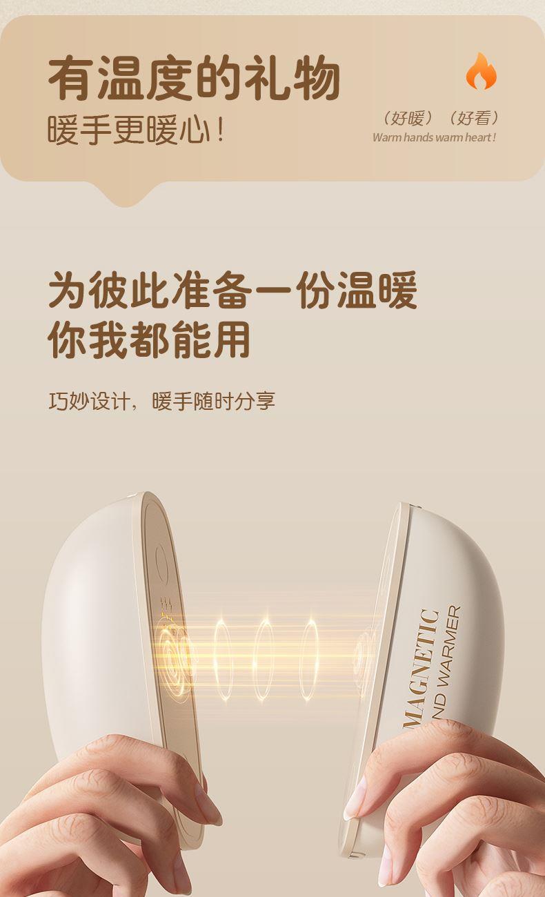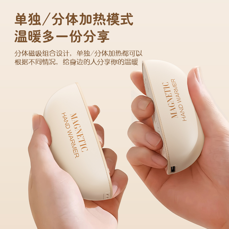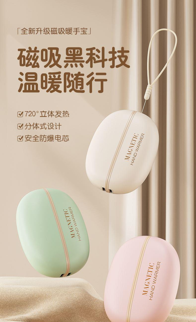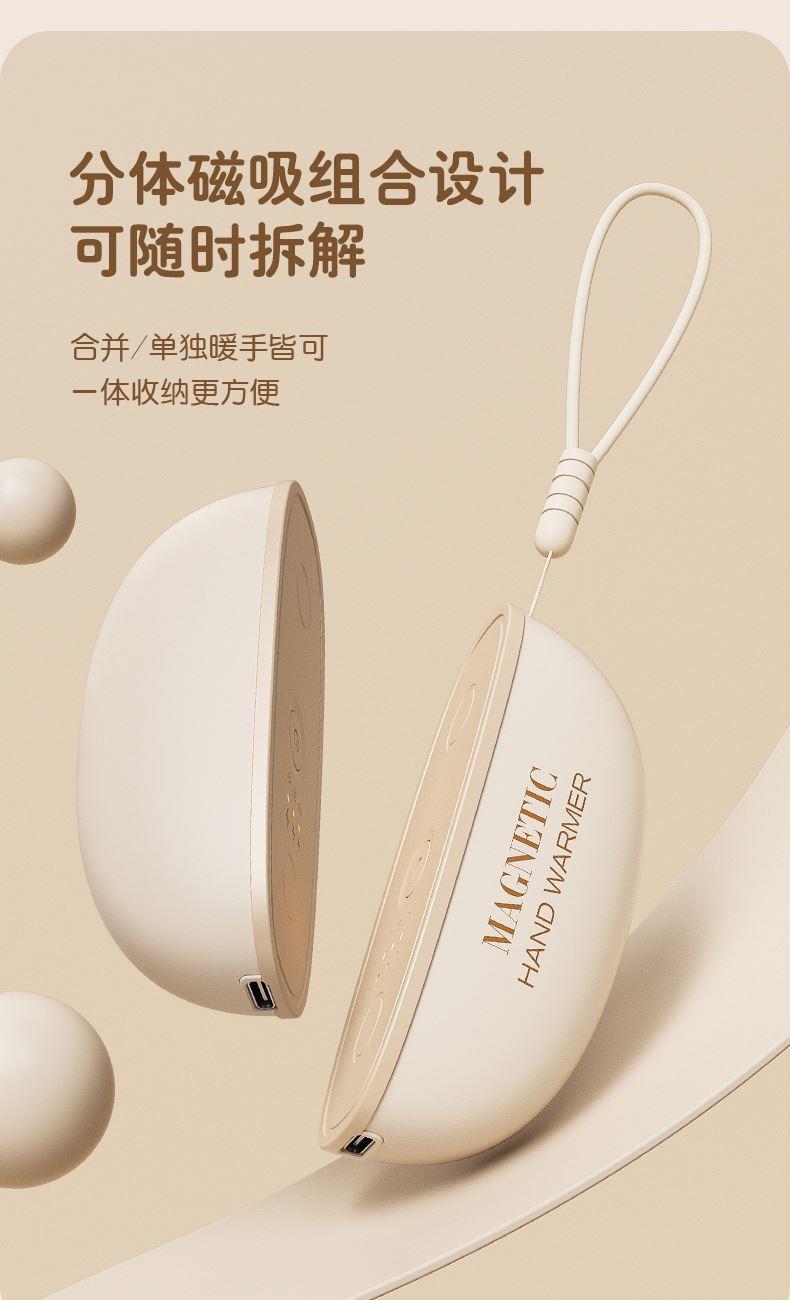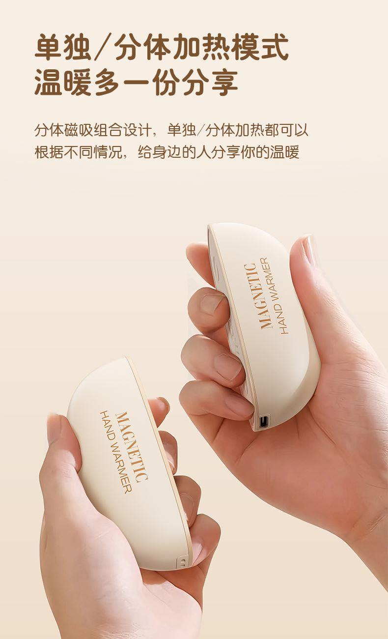 磁吸二合一暖手宝 6000毫安,单体3000毫安 60°恒温发热,360°温暖 三档温控调节,一键速热 简约商务造型,手感温润舒适