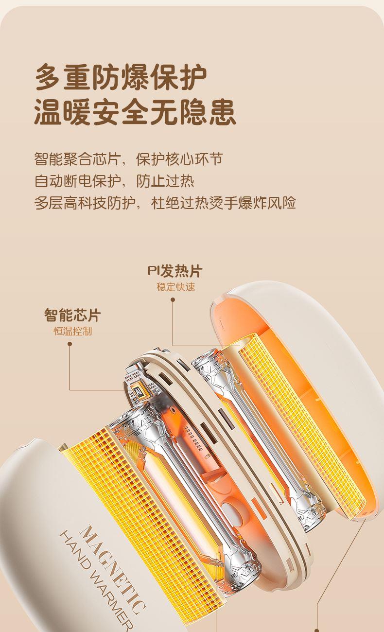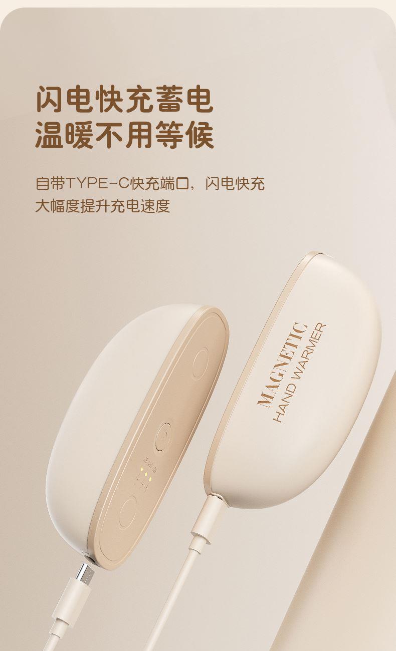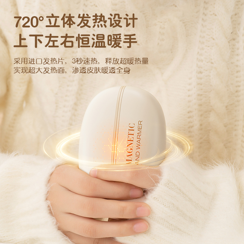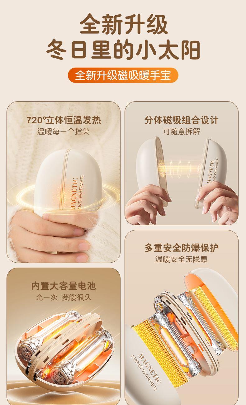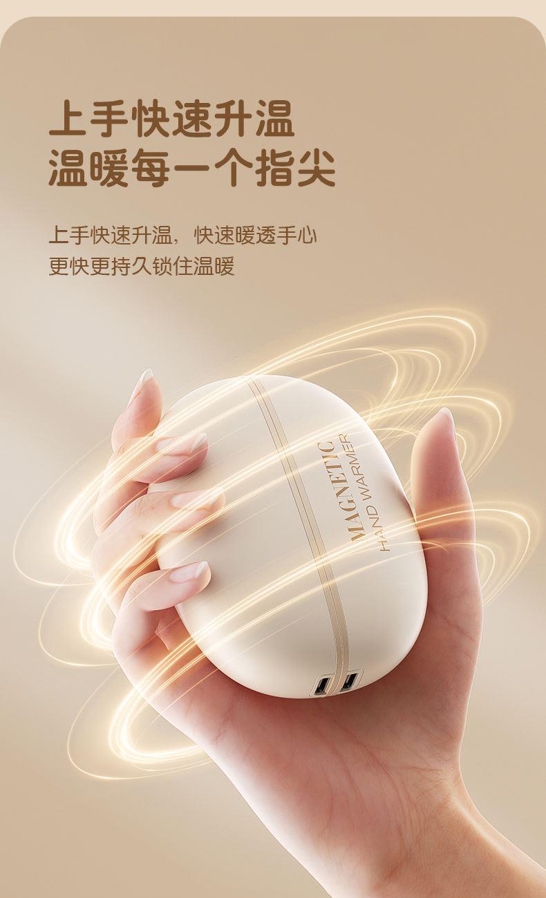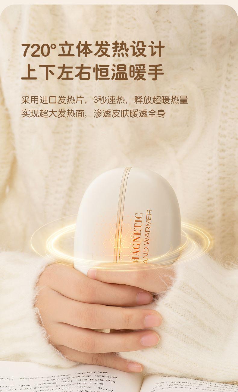 磁吸二合一暖手宝 6000毫安,单体3000毫安 60°恒温发热,360°温暖 三档温控调节,一键速热 简约商务造型,手感温润舒适