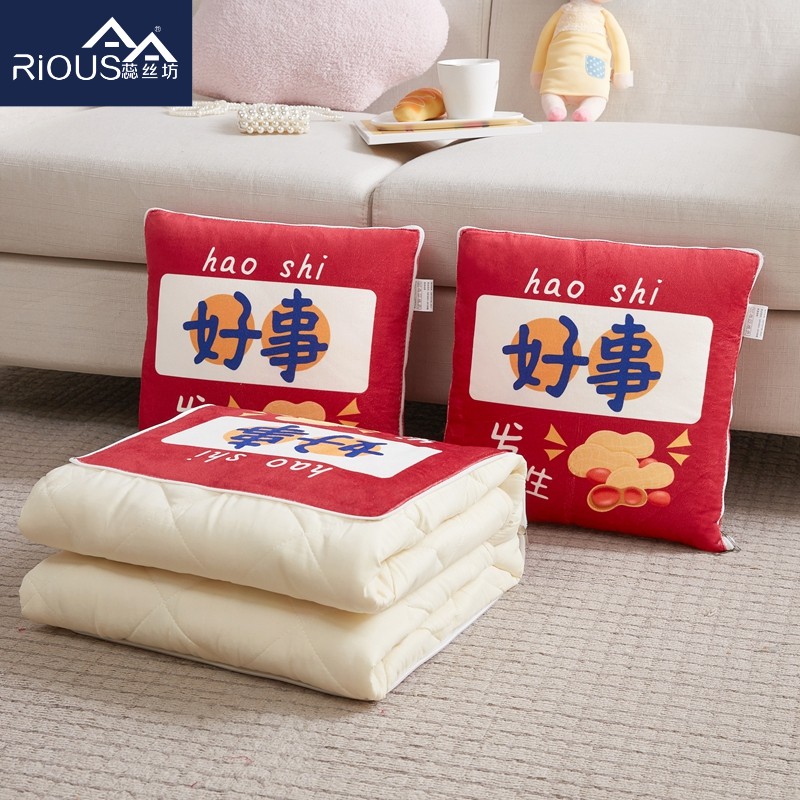 蕊丝坊家纺水晶绒多功能好运打全格抱枕被