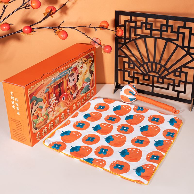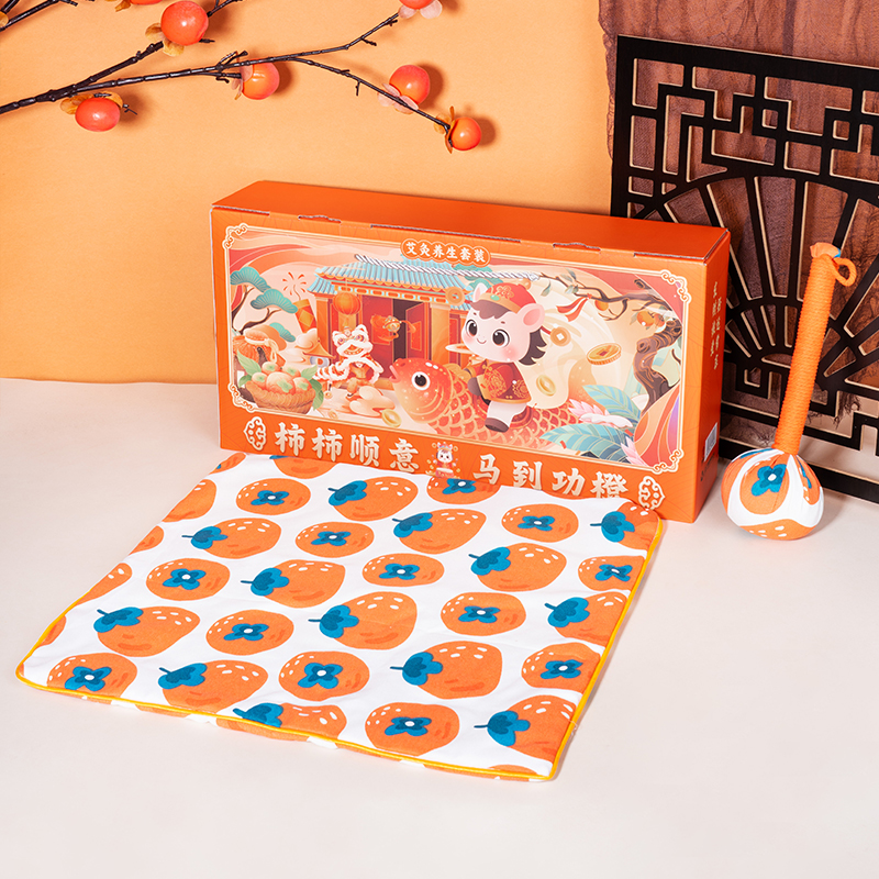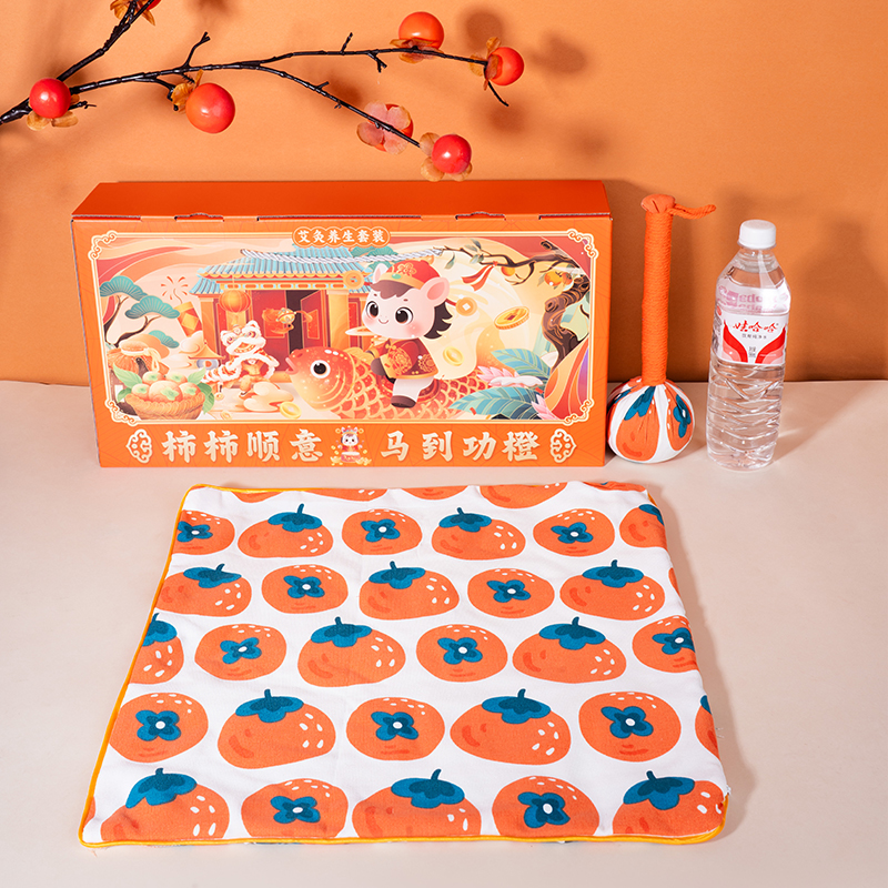 1、主题“柿柿顺意 马到功橙”,吉祥寓意满满,既与产品面料颜色图案相呼应,又体现了马年开门红元素,是新年贺岁、开门红主题产品!