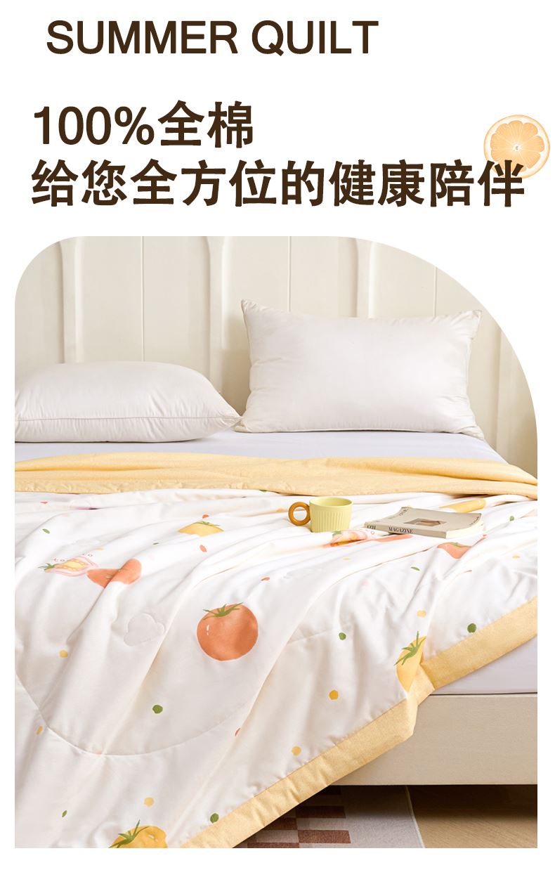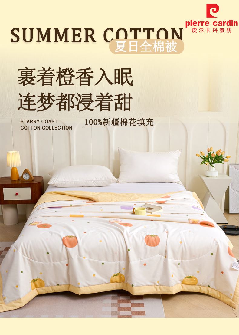 皮尔卡丹纯棉夏被心享柿橙PCAZ-26036