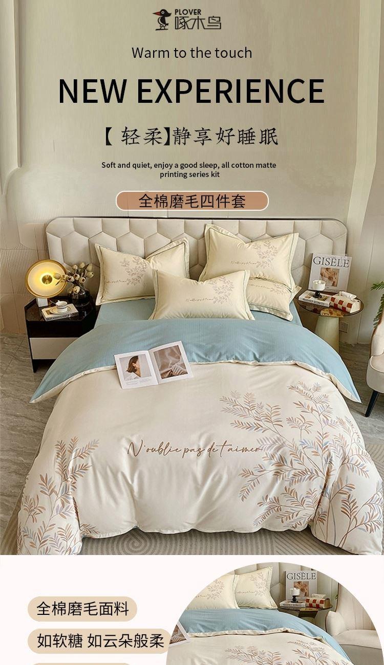 啄木鸟全棉磨毛四件套-适合1.8M/1.5M床