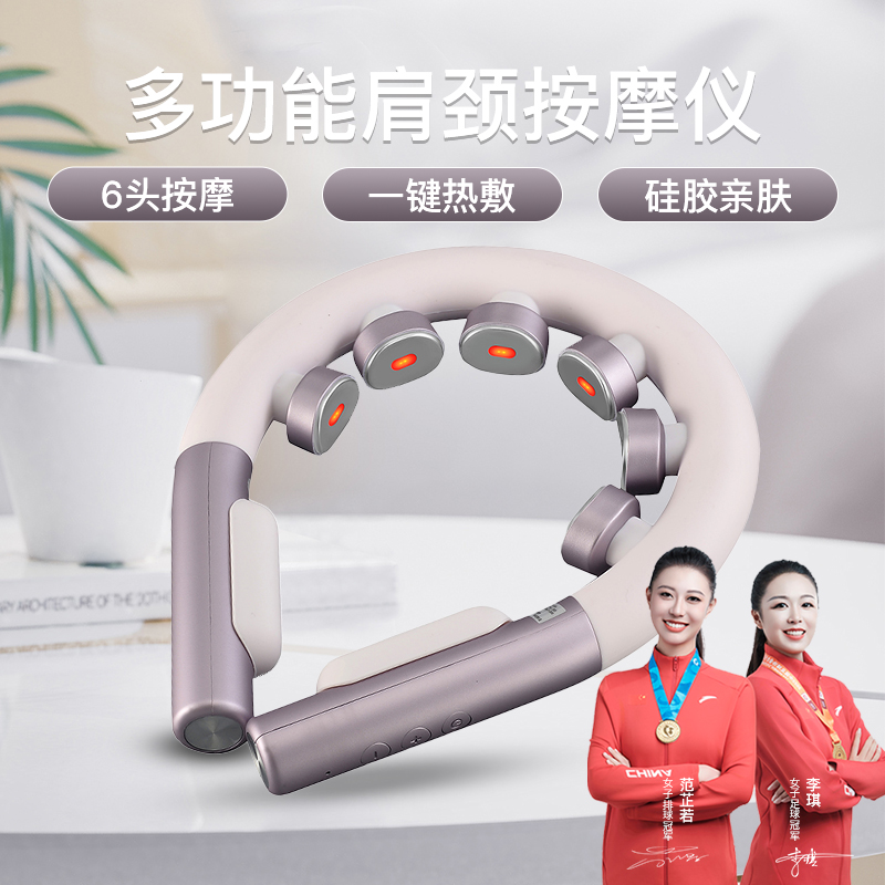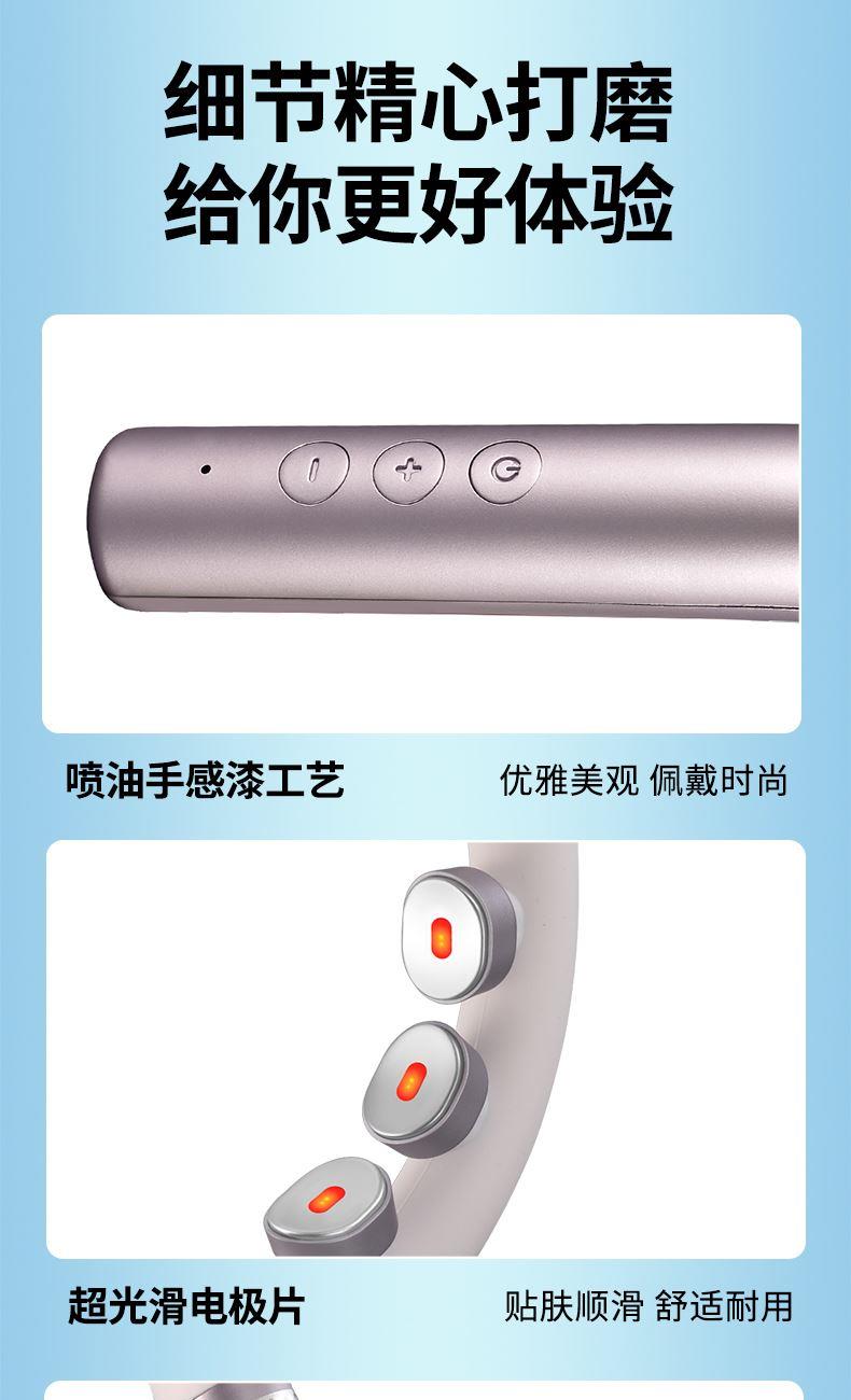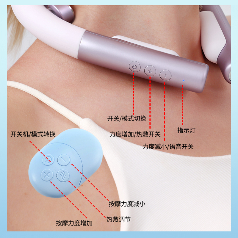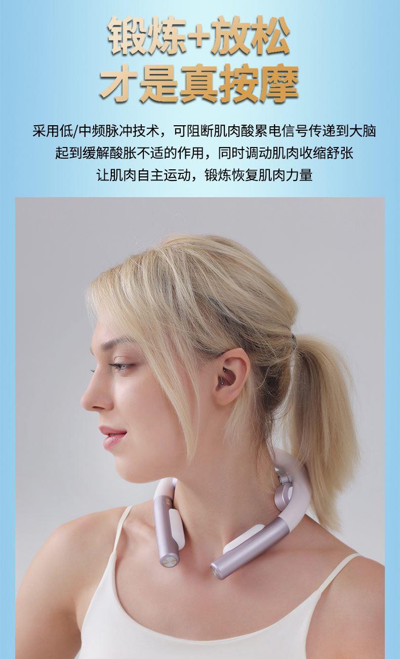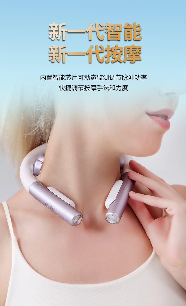 产品材质:ABS、硅胶 额定参数:5V/1.5W 充电接口:USB 产品重量:178g 电池容量:1000mAh 6 头立体按摩 + 360° 旋转:6 组按摩头搭配 360° 任性旋转设计,突破传统按摩局限,贴合颈椎曲线,覆盖后颈、肩周等酸痛区域,多维度模拟人手揉捏、按压,一次按摩即可缓解大面积肌肉僵硬 一键开启 42℃恒温热敷:无需复杂操作,一键启动热敷功能,暖流透过亲肤硅胶渗透颈肩,搭配脉冲、震动按摩同步作用,快速驱散肌肉寒意,秋冬使用暖颈更暖心,缓解酸痛效果翻倍 食品级软硅胶亲肤材质:按摩头与接触面均采用软硅胶材质,触感细腻亲肤,敏感肌使用无刺激,长期佩戴不闷汗、不压痕,贴合颈部时如同人手轻抚,舒适度远超普通塑料材质按摩仪 10 大模式 + 16 档力度 + 双频按摩:涵盖揉捏、捶打、脉冲等 10 大专业按摩模式,搭配 16 档细腻力度调节,再加上低 / 中双频按摩可选,无论是日常放松、运动后舒缓,还是针对性缓解颈椎不适,都能匹配需求,全家老少都能用 无线遥控 + 随心调节:配备无线遥控器,无需低头操作,躺卧、办公时随手就能切换模式、调节力度,远距离操控不耽误追剧、工作,享受按摩更自由,懒人必备便捷设计 智能芯片动态调节技术:内置高灵敏智能芯片,实时检测电极片与皮肤的贴合度,根据皮肤接触状态动态调整脉冲功率,避免高阻抗下的刺痛感,让脉冲按摩全程平稳舒适,新手也能轻松驾驭 多技术融合仿真人手体验:整合热敷、脉冲、震动三大核心技术,搭配智能芯片模拟专业按摩师手法,从浅层放松到深层舒缓,每一下按摩都到位,足不出户就能享受线下理疗店级别的颈椎护理