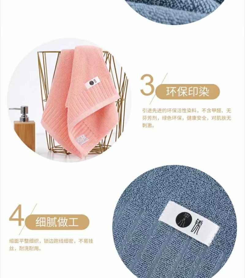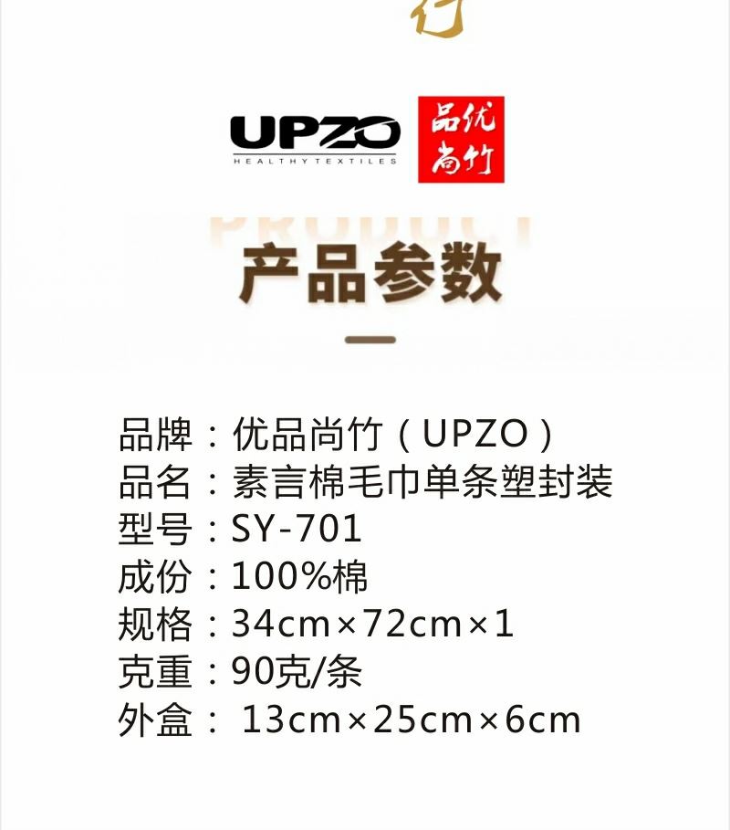 型号: SY-701 成份: 精梳棉 (缎档及装饰品除外) 标准: GB/T22864-2020 类别: GB31701-2015 B类 规格: 34cm×72cm×1 (90 g) 礼袋: 13cm×25cm×6cm 素雅设计风格 精梳棉材质 90克产品克重 大毛巾规格