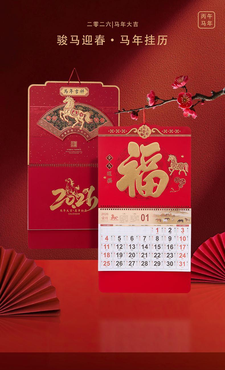 一辈子:2026马年新款福牌挂历浮雕吊牌撕历月历烫金