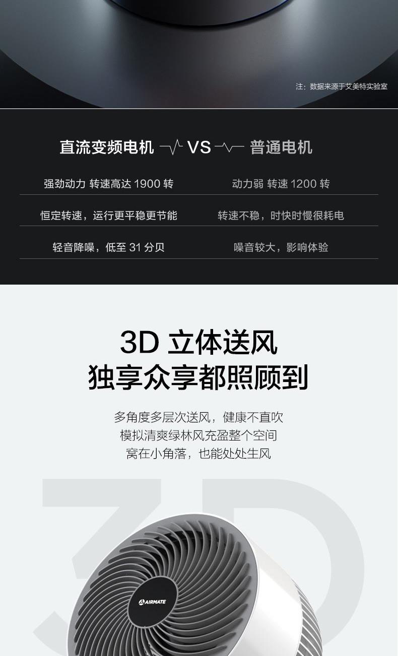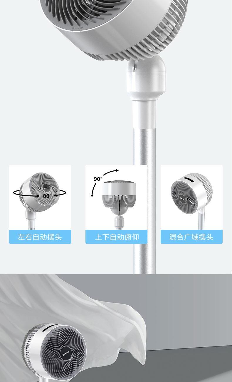 7、【3D立体送风】左右自动摆头,上下手动摆头
