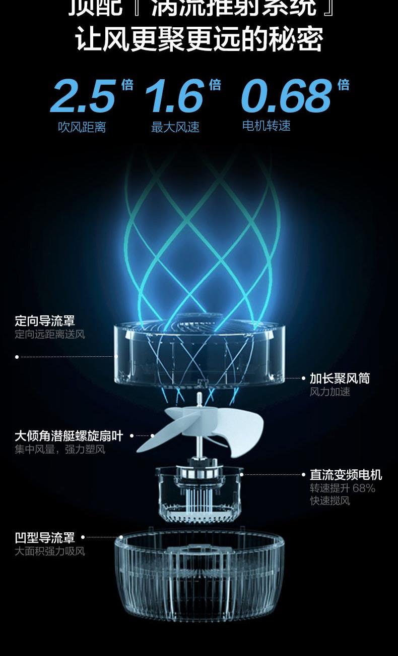 3、【大倾角螺旋扇叶】风力强劲,送风距离更远