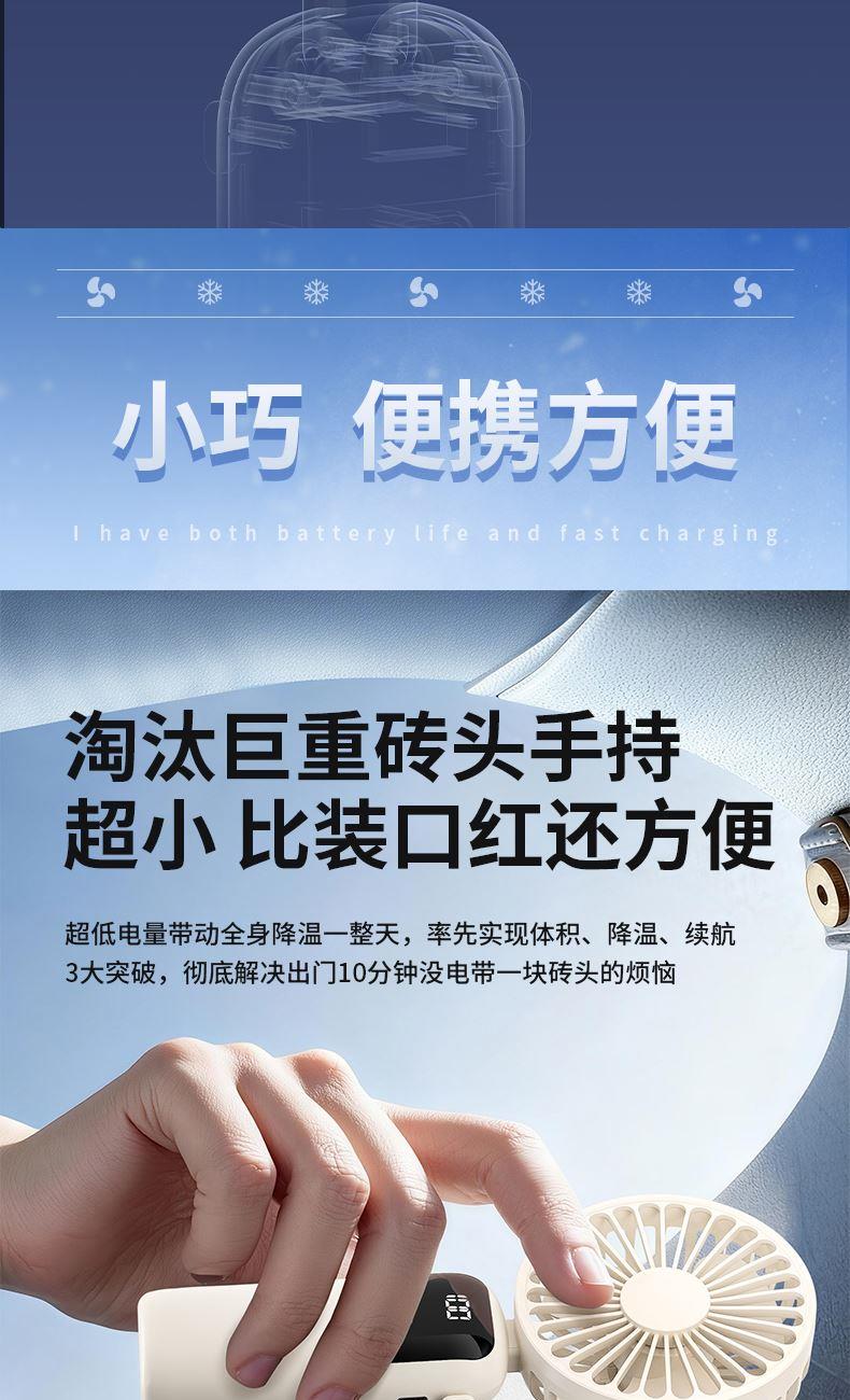 产品材质:ABS 产品功能:100档风力调节 产品容量:1200mAh 产品尺寸:202*90*37mm 产品颜色:白色,蓝色,橙色 智能数显设计,剩余电量一目了然;采用高性能锂电池,续航更持久,更静音,使用寿命更长。100档调节,风力随心选。定制LOGO面积大。