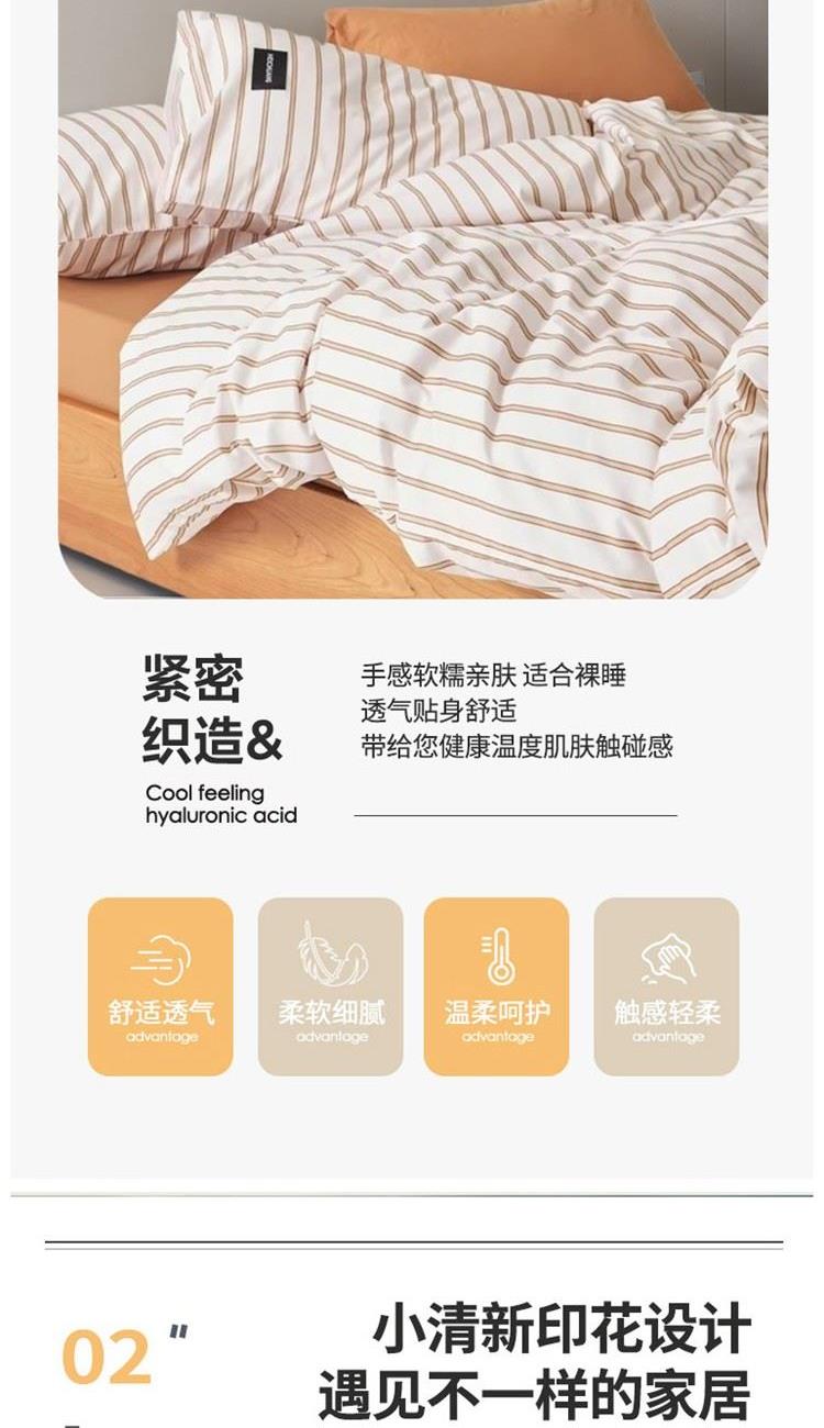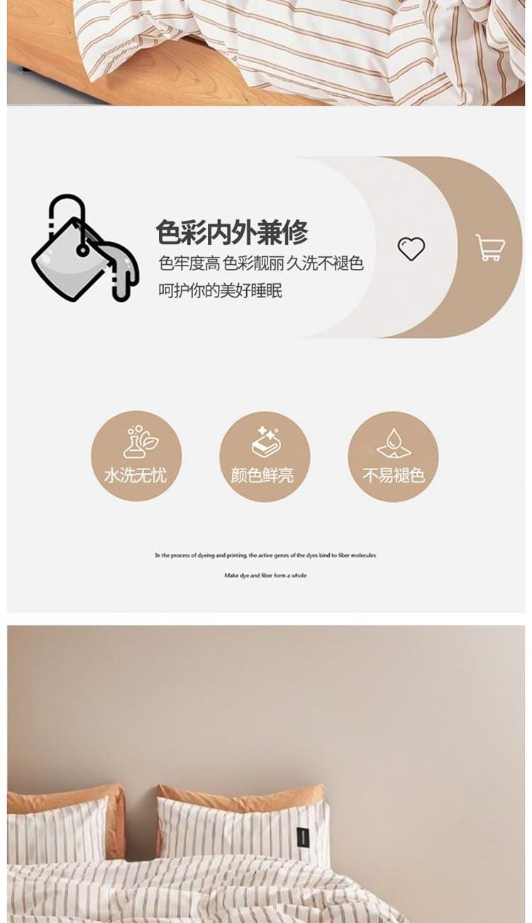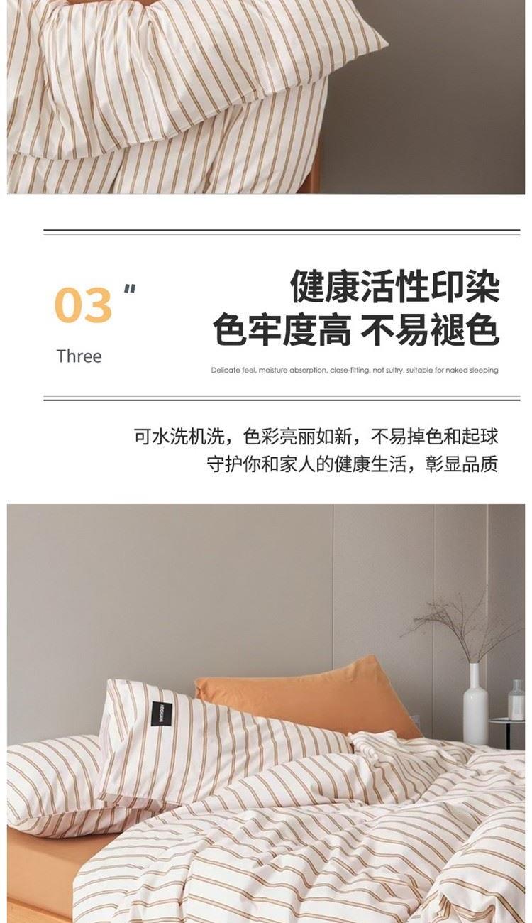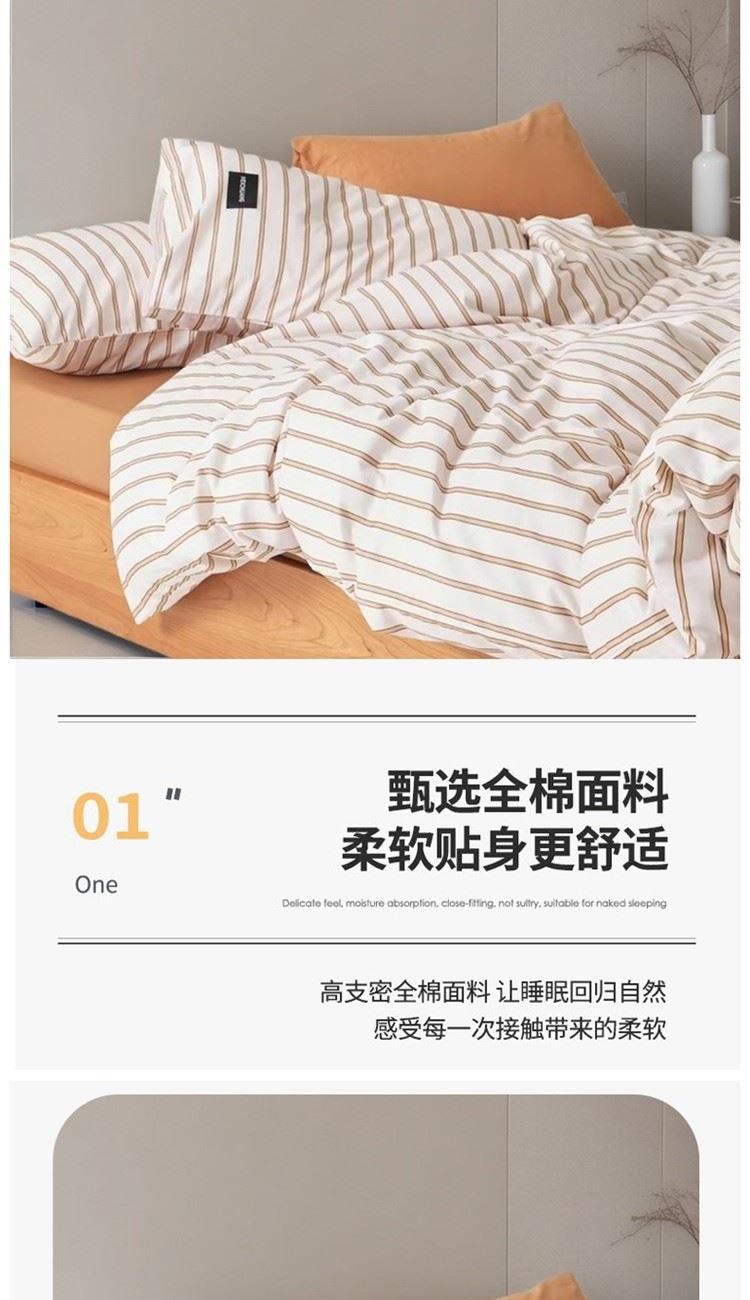 规格: 床单:230*250cm 被罩:200*230cm 枕套:48*74cmx2 面料:棉 1.全棉面料,贴身的更要精挑细选 2.活性印染工艺,健康环保,无甲醛,无致癌物 3.色调清新有层次,吸湿亲肤舒适,轻薄透气,缩水率低