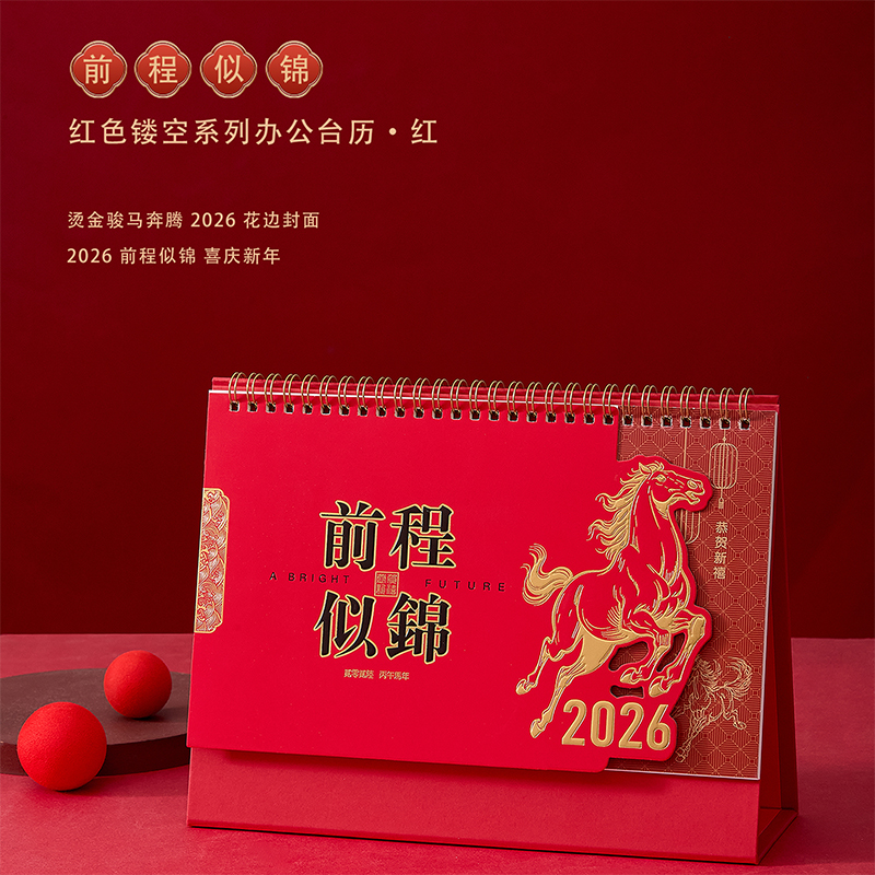 1.注:商城报价对应首张主图款式! 其他套装参考细节图,费用另计! 2. 咨询下单请备注好产品信息! 3.首图款式产品明细:前程似锦红色镂空台历