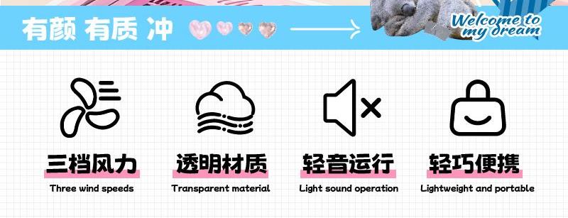 淘艺轩透明mini手持风扇JAF03T