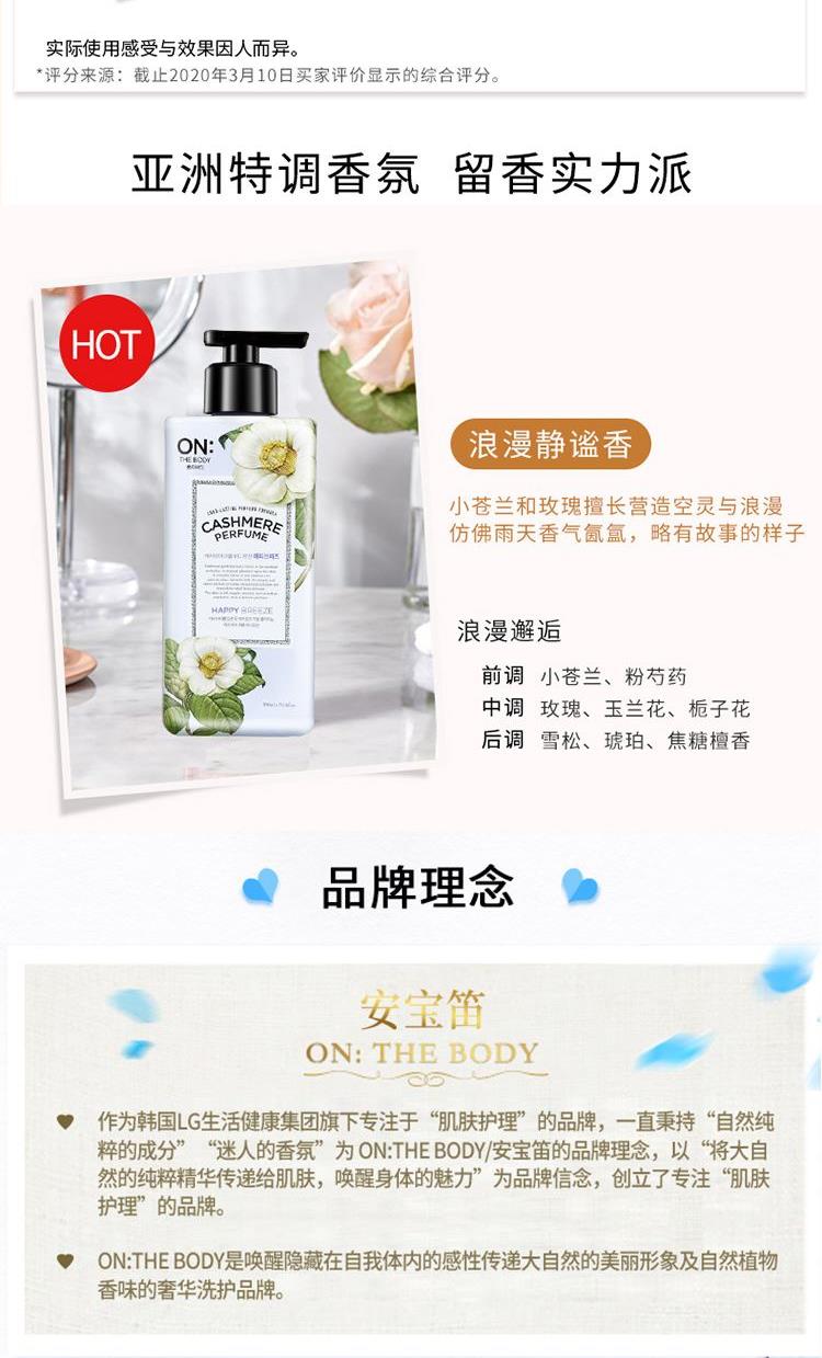 香水级氛(馥郁香气 丝丝索饶),产品功效:清洁皮肤,滋润美肌,留香更长,植物精油成分,细致渗透力,肌肤易吸收,打造润泽美肌。 润体乳:1、香水配方,持久留香; 2、添加3钟保湿精油保湿身体乳; 3、低刺激配方,5不添加敏感肌肤也使用(不添加甲酸酯、人工色素、三乙醇胺、丙二醇、矿物油)