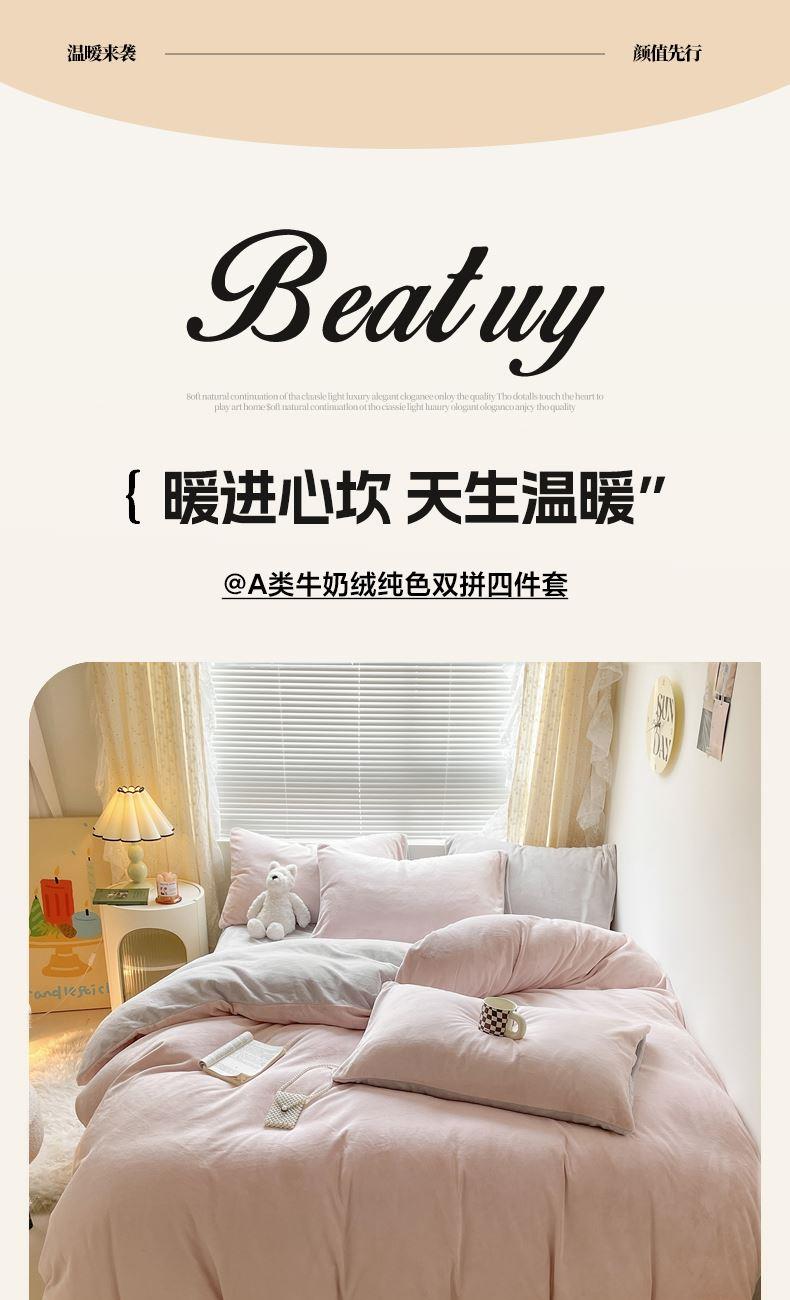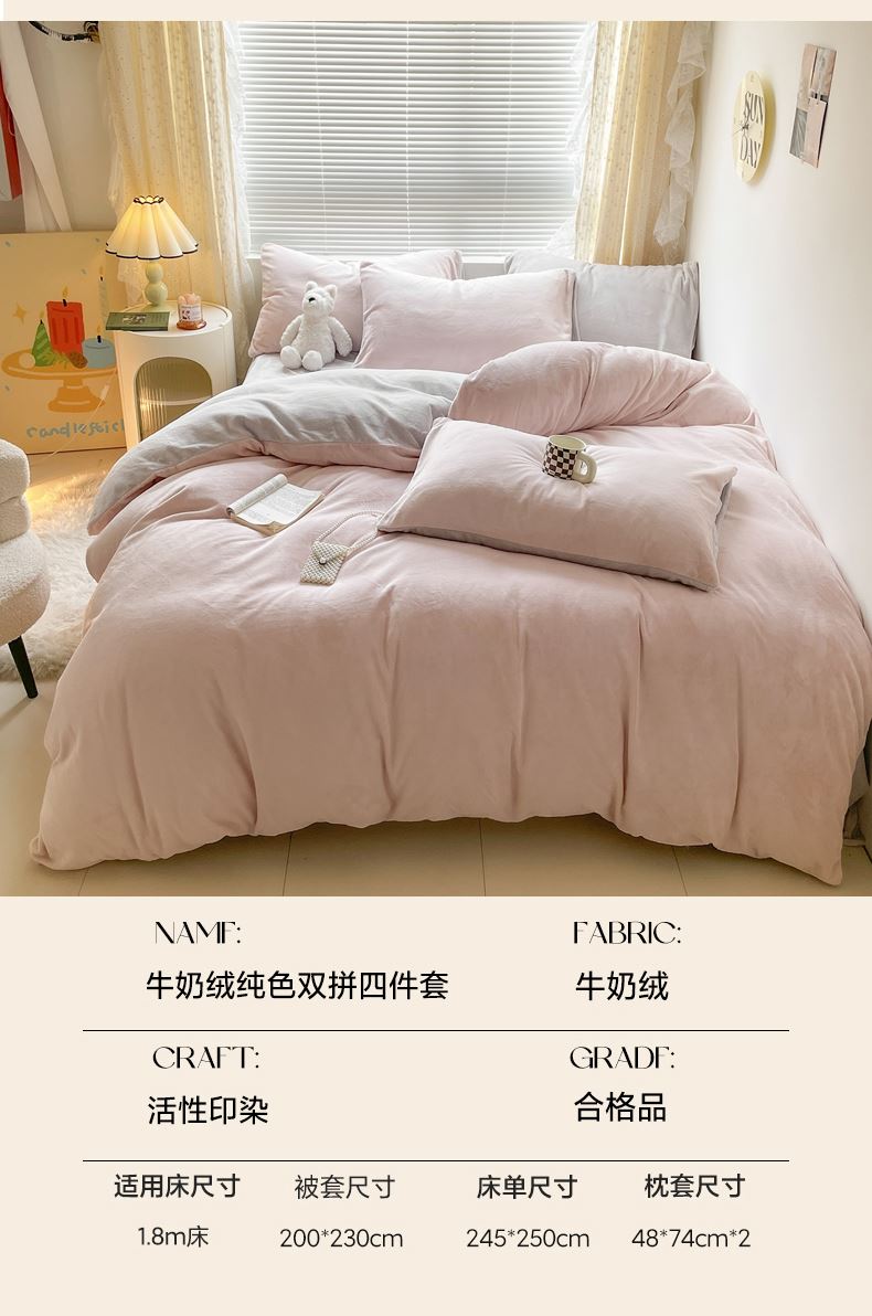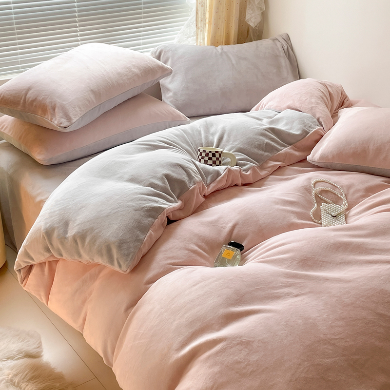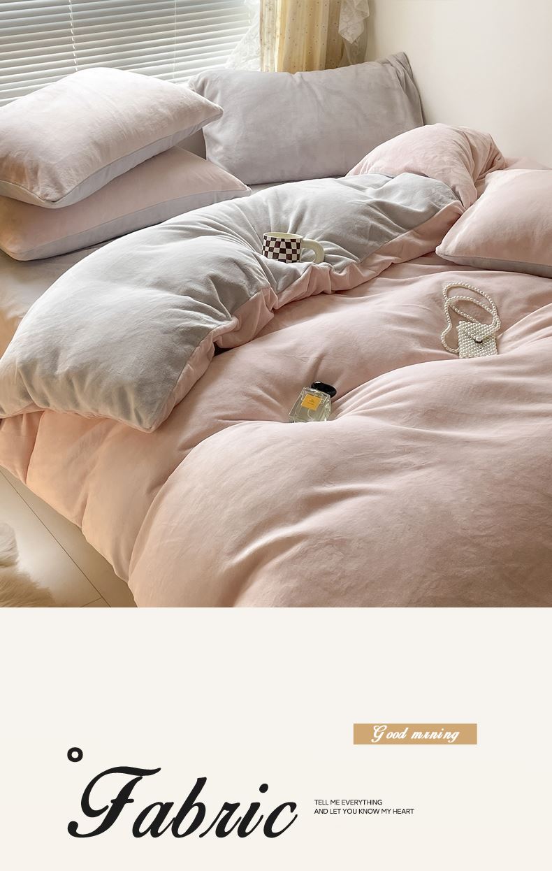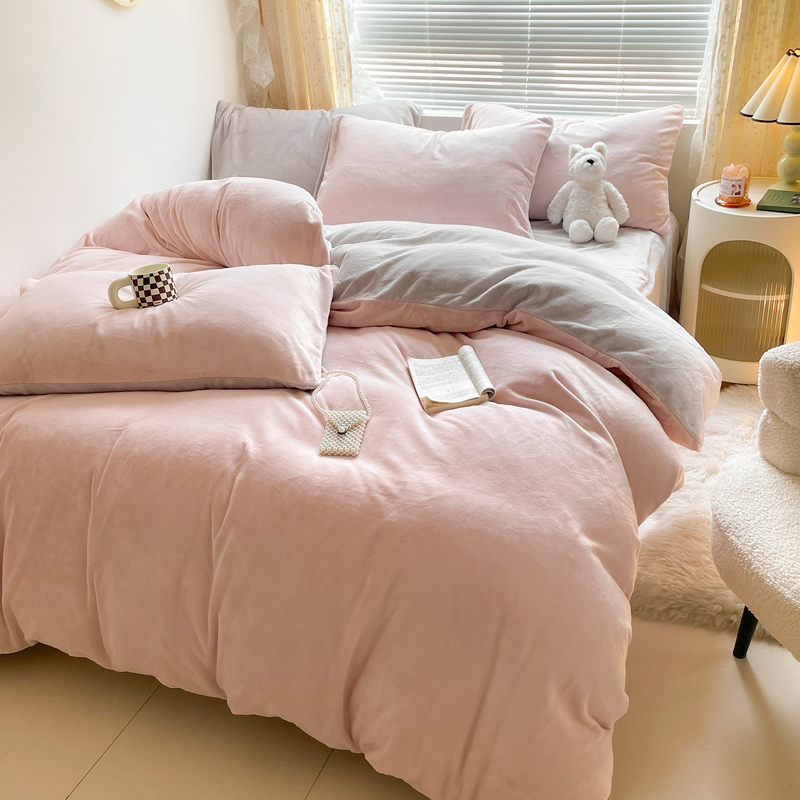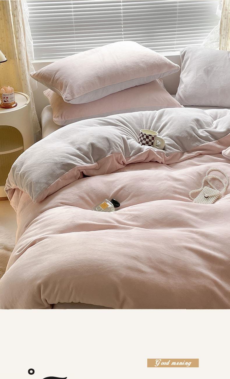 百丽安娜纯色牛奶绒四件套-粉灰
