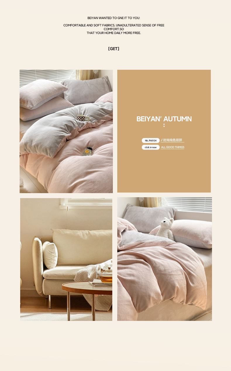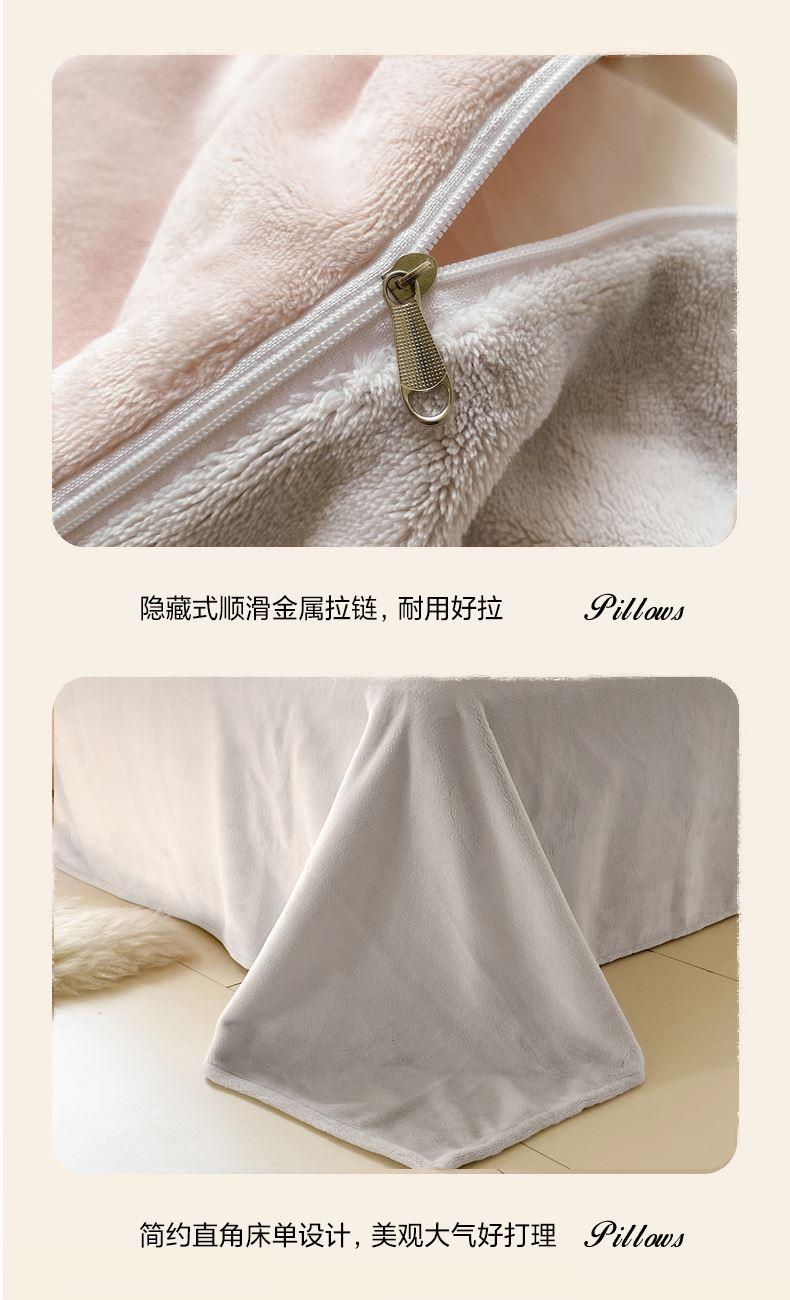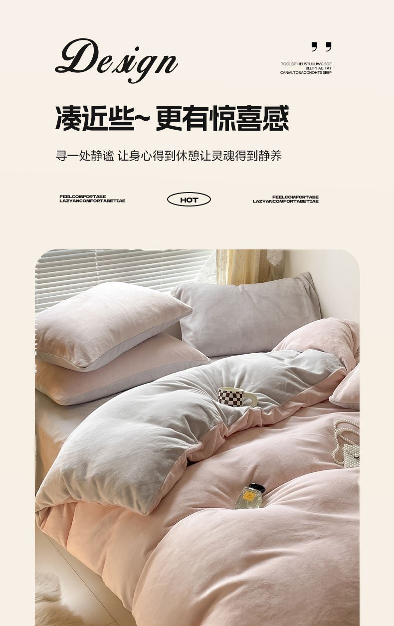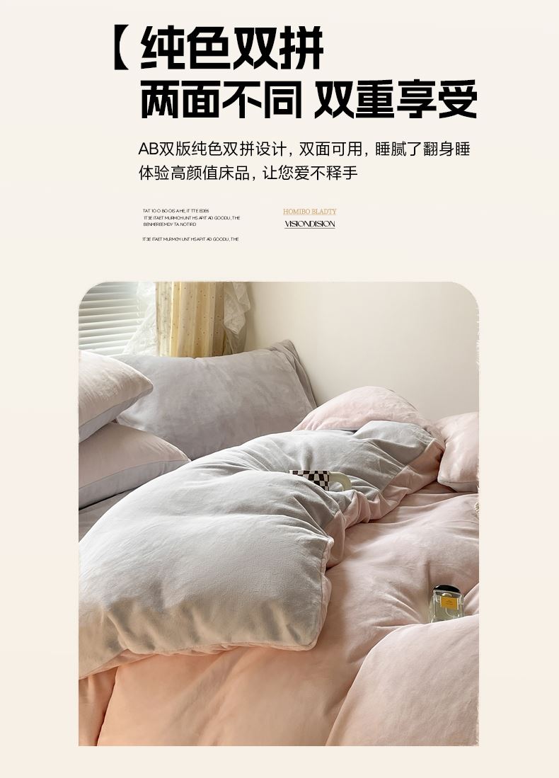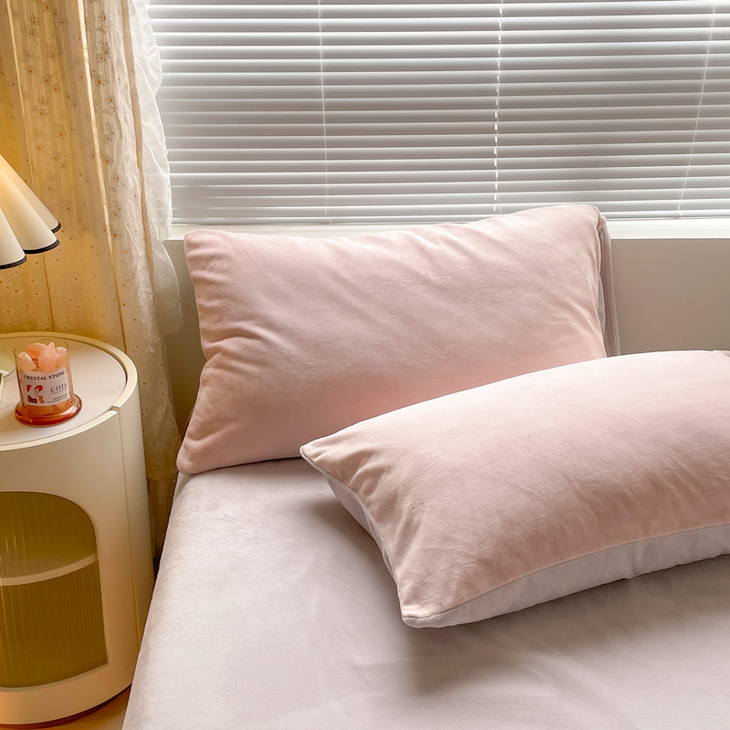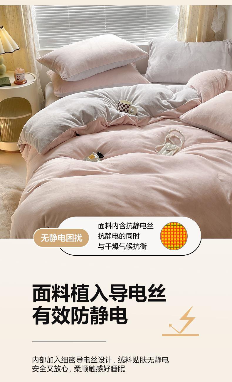 百丽安娜纯色牛奶绒四件套-粉灰