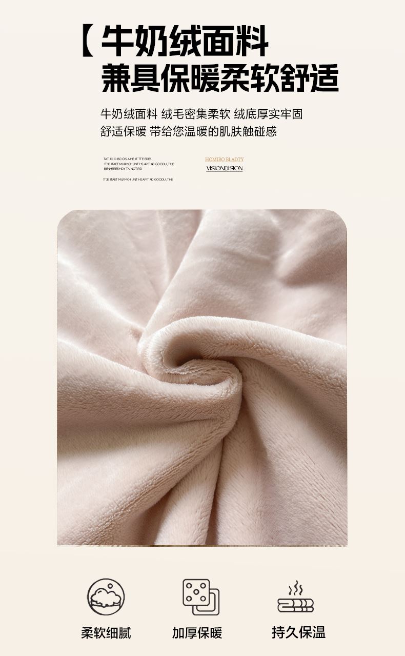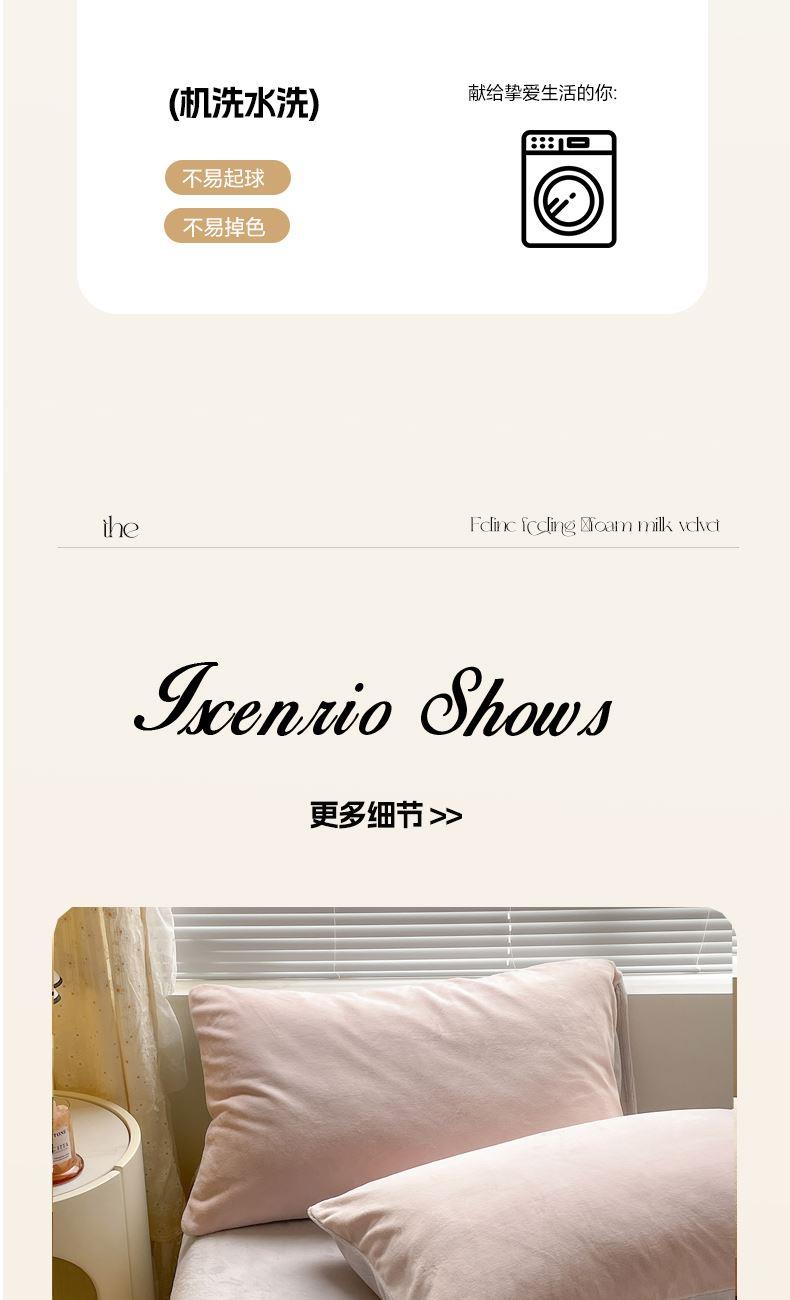被套:200×230cm 床单:245×250cm 枕套:48×74cm 适用:1.5M-1.8M床 面料:牛奶绒(抗静电) 风格 : 轻奢风格 高克重牛奶绒细密紧实、柔软细腻、加厚保暖、锁温蓄热能力好,告别冬日冷被窝,可以暖呼呼睡个好觉,独享属于你的私人空间。